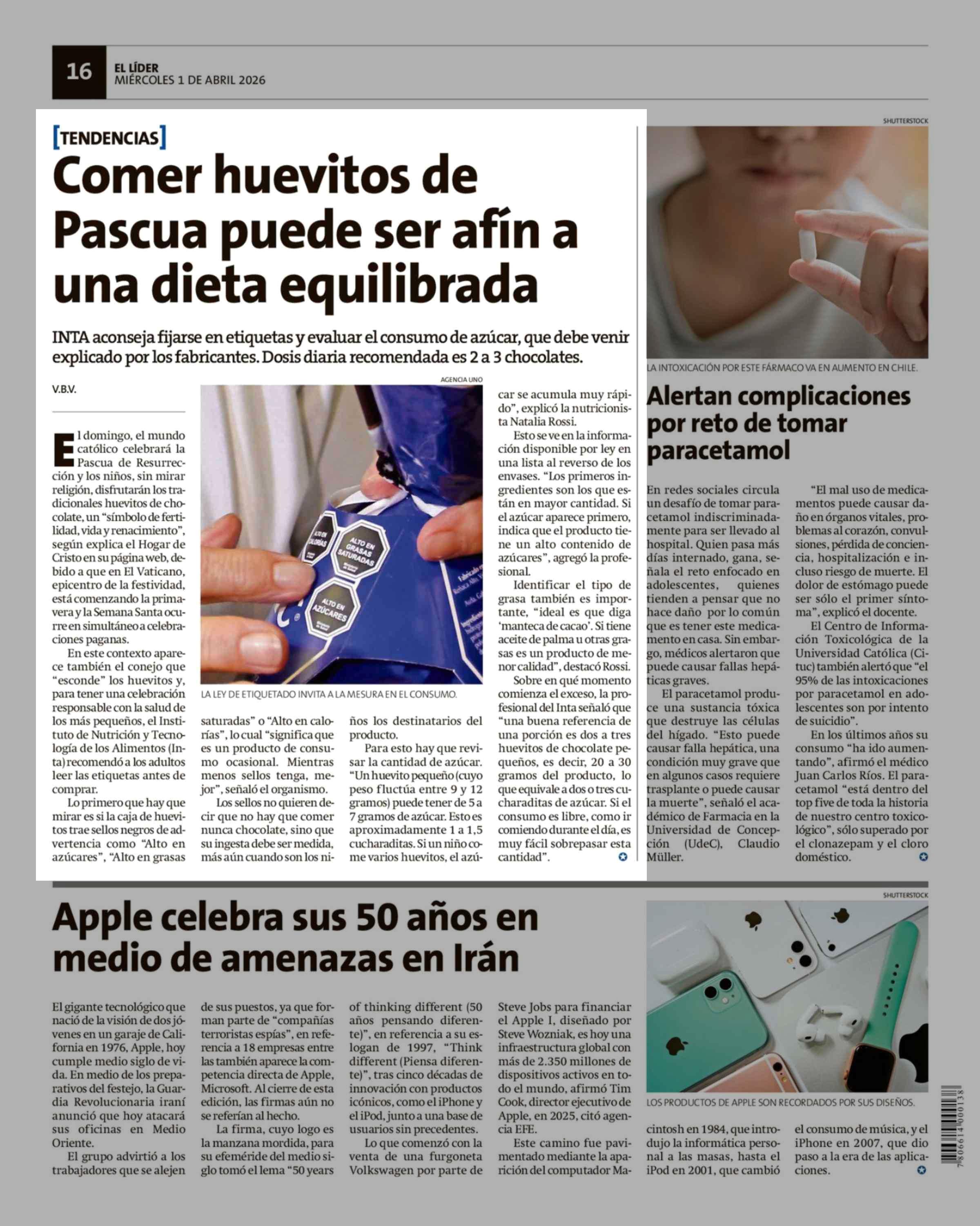 Comer huevitos de Pascua puede ser afín a una dieta equilibrada 01-04-2026 El Líder |