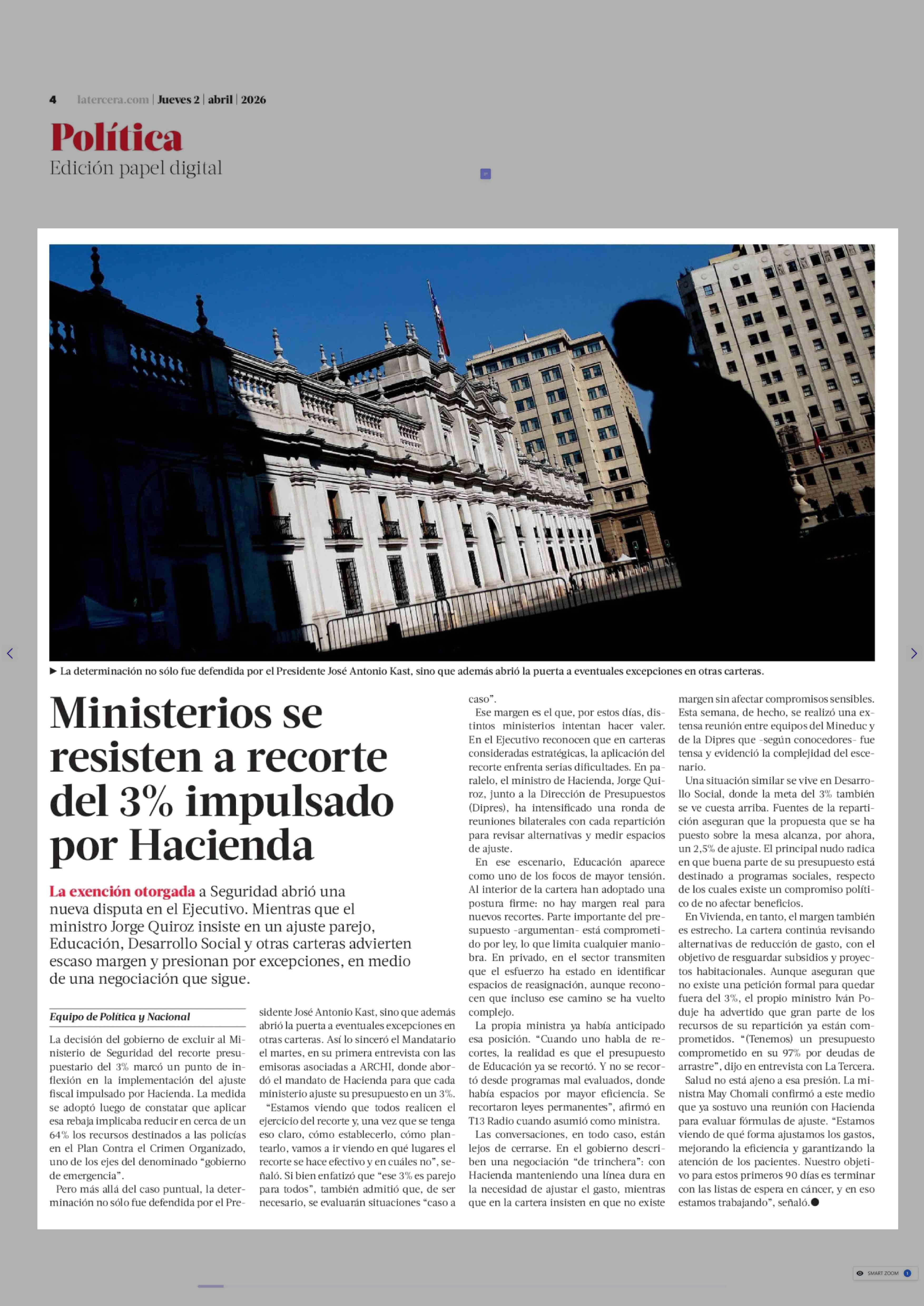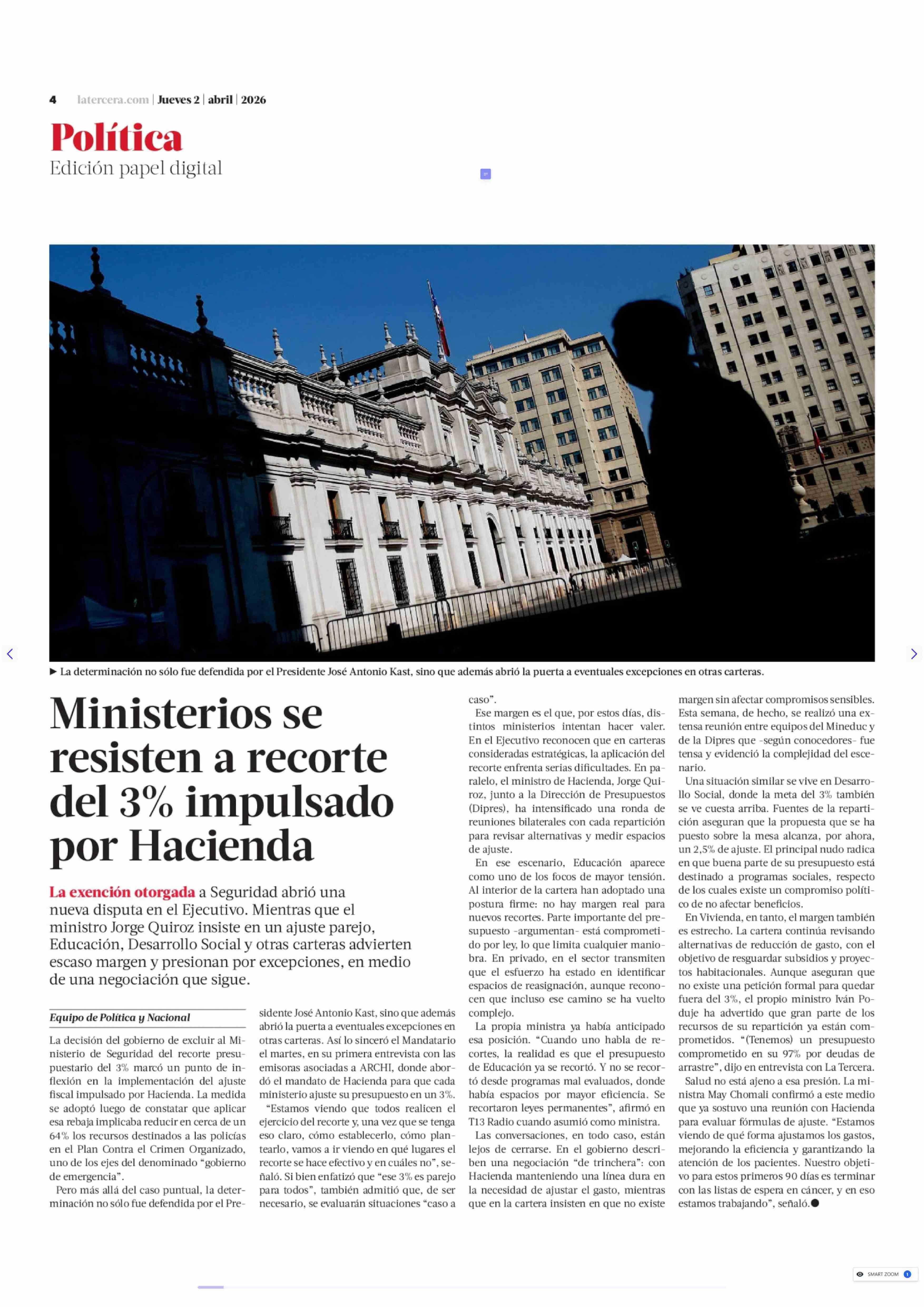 Fuente: La Tercera (La Tercera) Página(s): 4