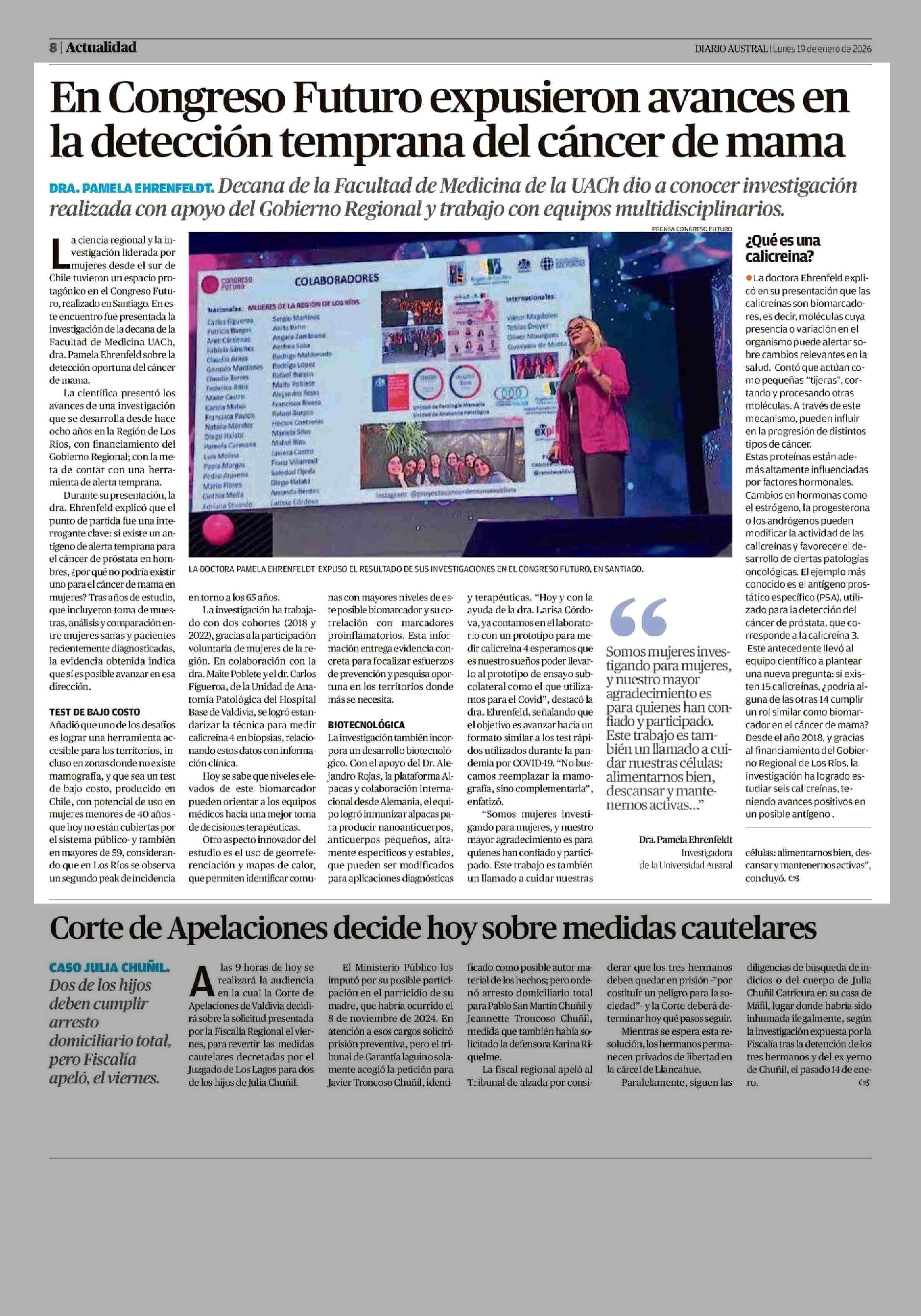 En Congreso Futuro expusieron avances en la detección temprana del cáncer de mama 19-01-2026 Diario Austral Región de Los Ríos |