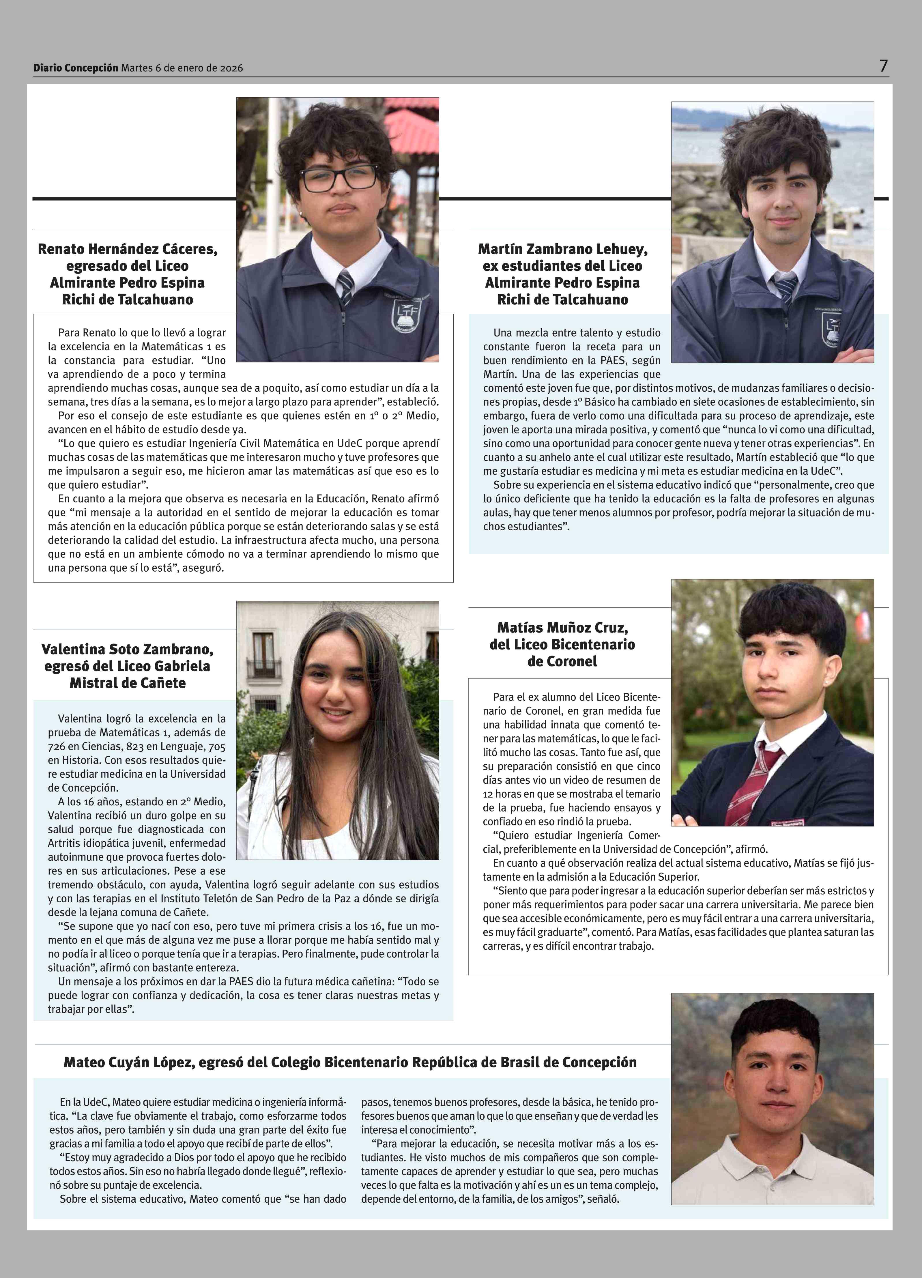 Jóvenes con puntaje máximo de Biobío en la PAES entregaron su receta para lograrlo 06-01-2026 Diario Concepción |