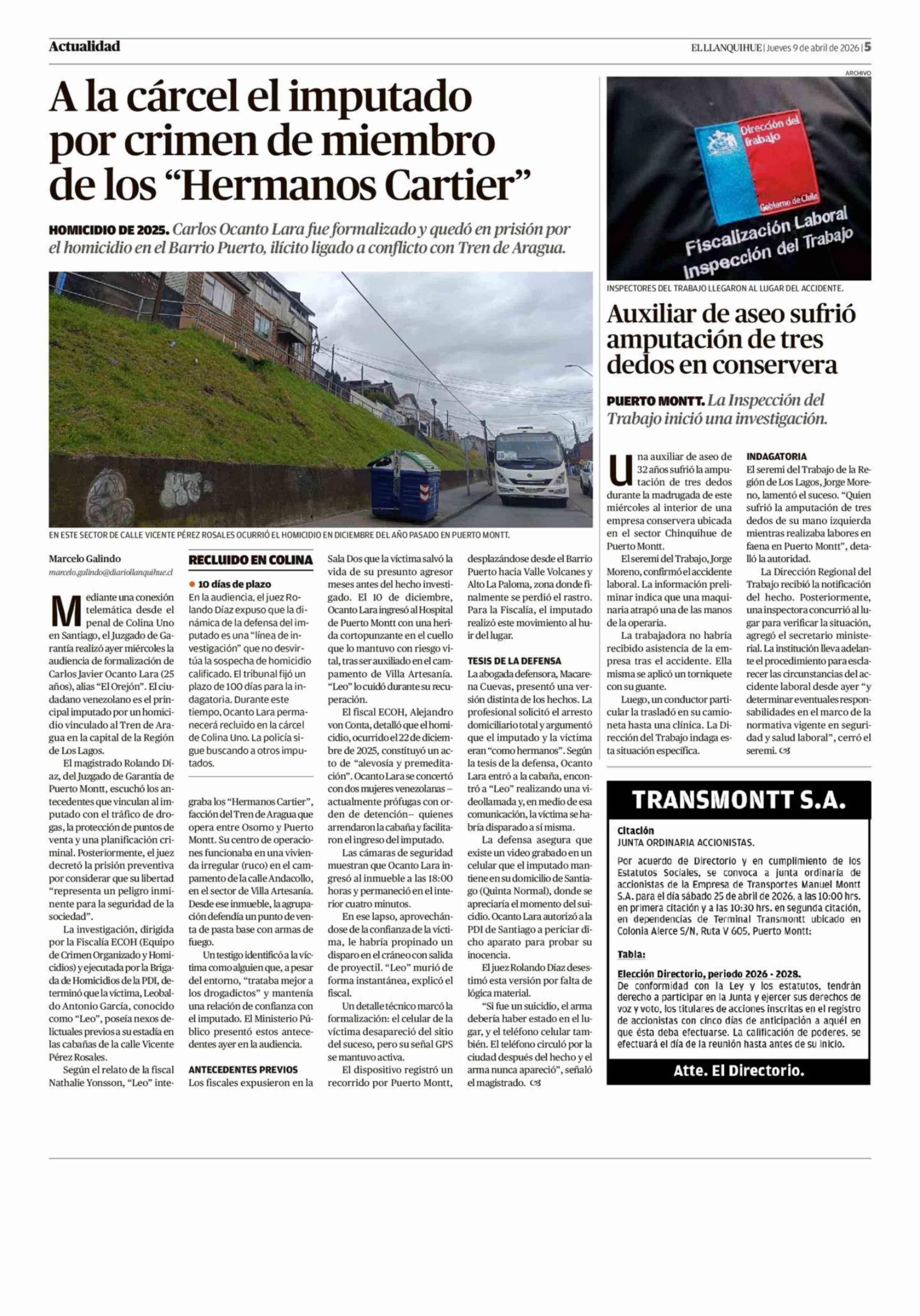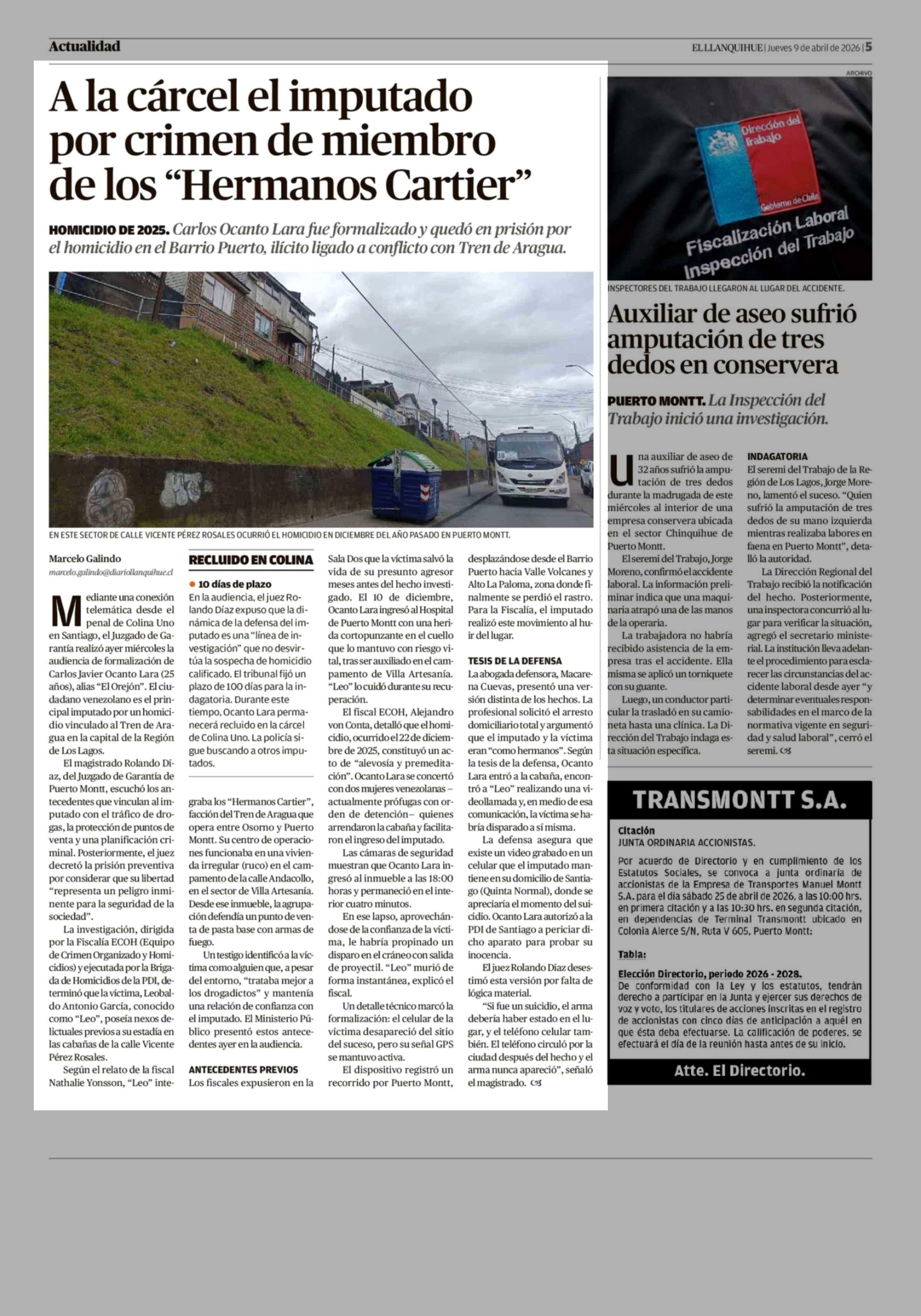A la cárcel el imputado por crimen de miembro de los "Hermanos Cartier" 09-04-2026 El Llanquihue |