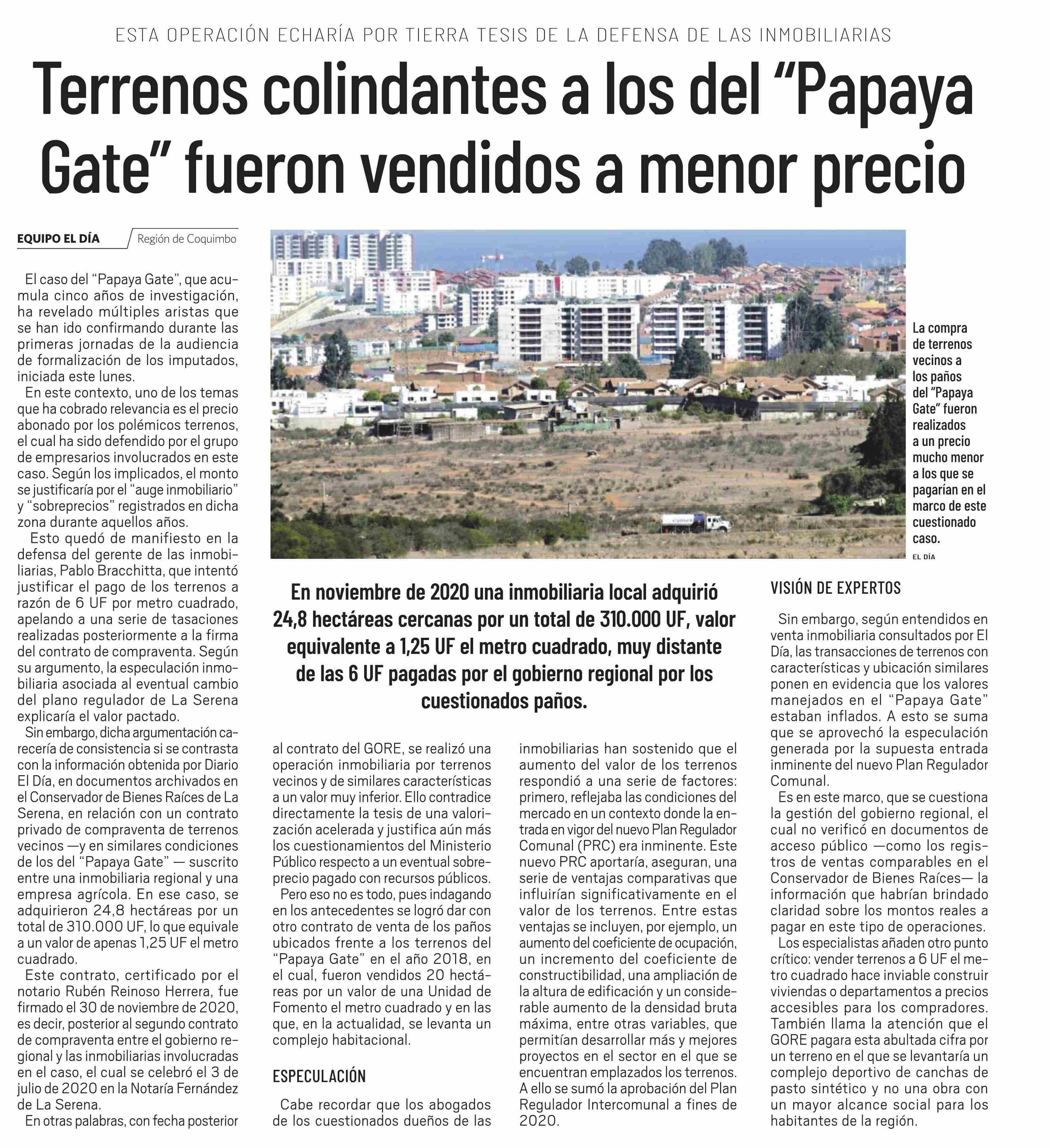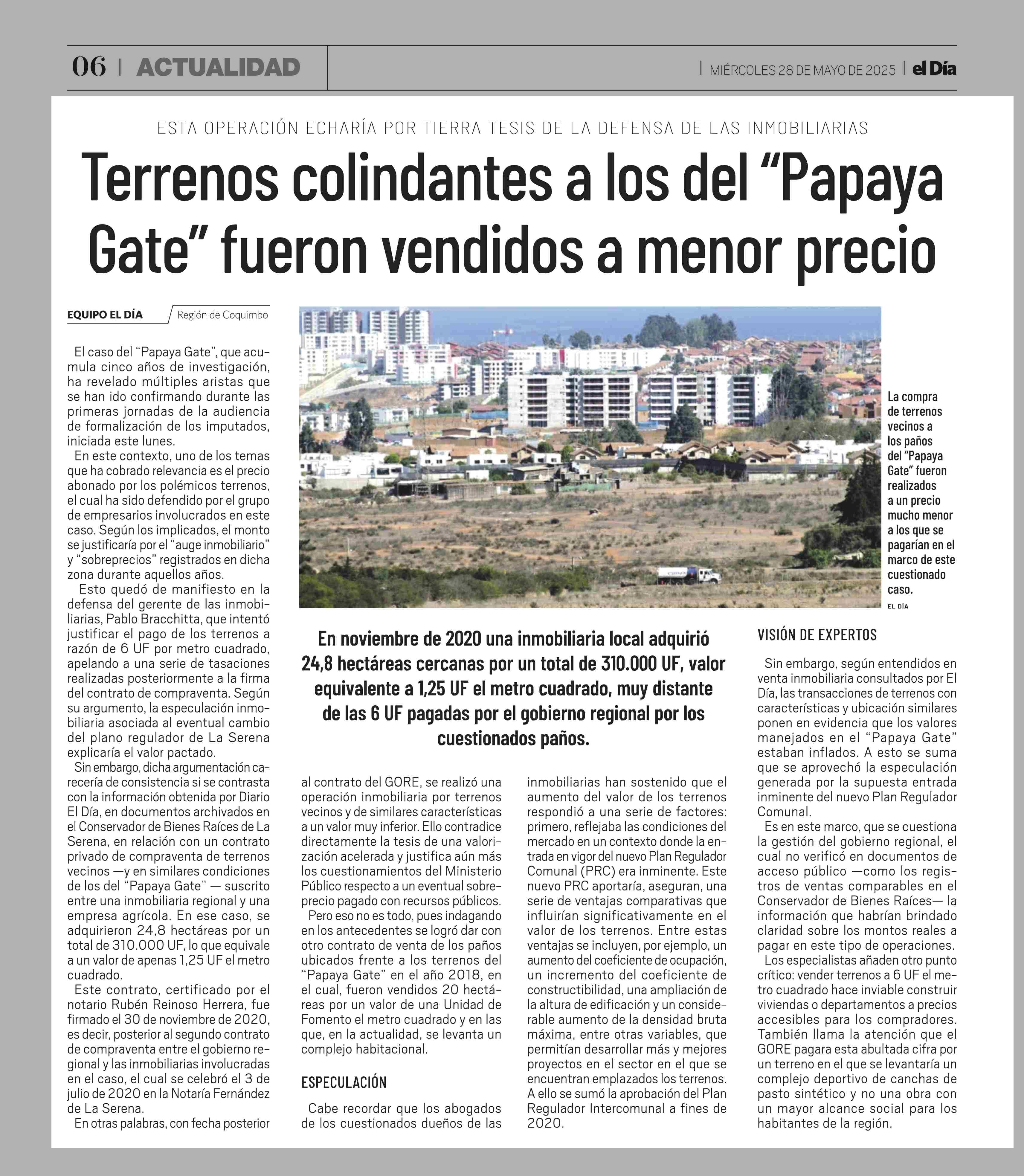 Terrenos colindantes a los del "Papaya Gate" fueron vendidos a menor precio 28-05-2025 El Día |