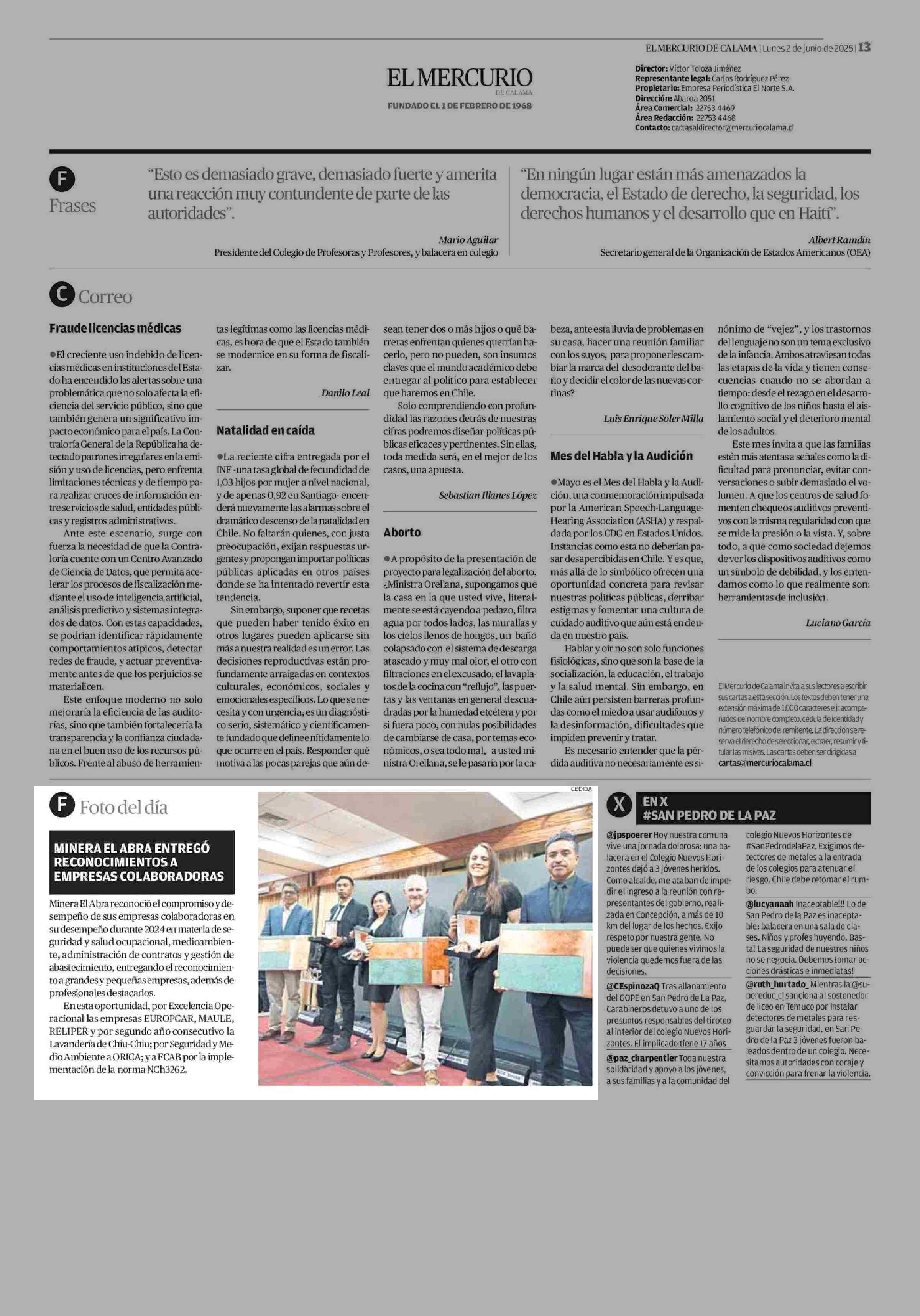 (F) Foto del día 02-06-2025 El Mercurio de Calama |