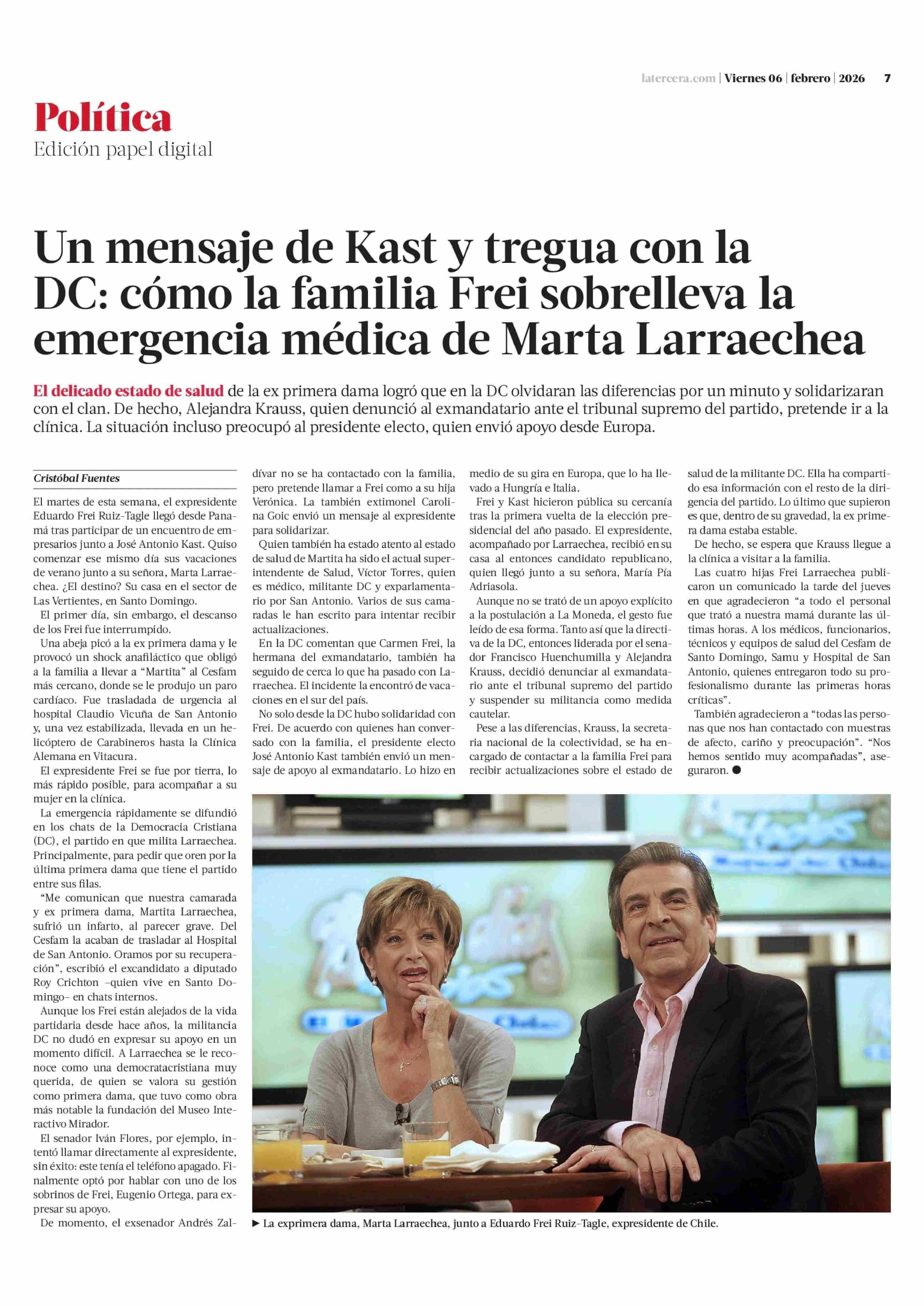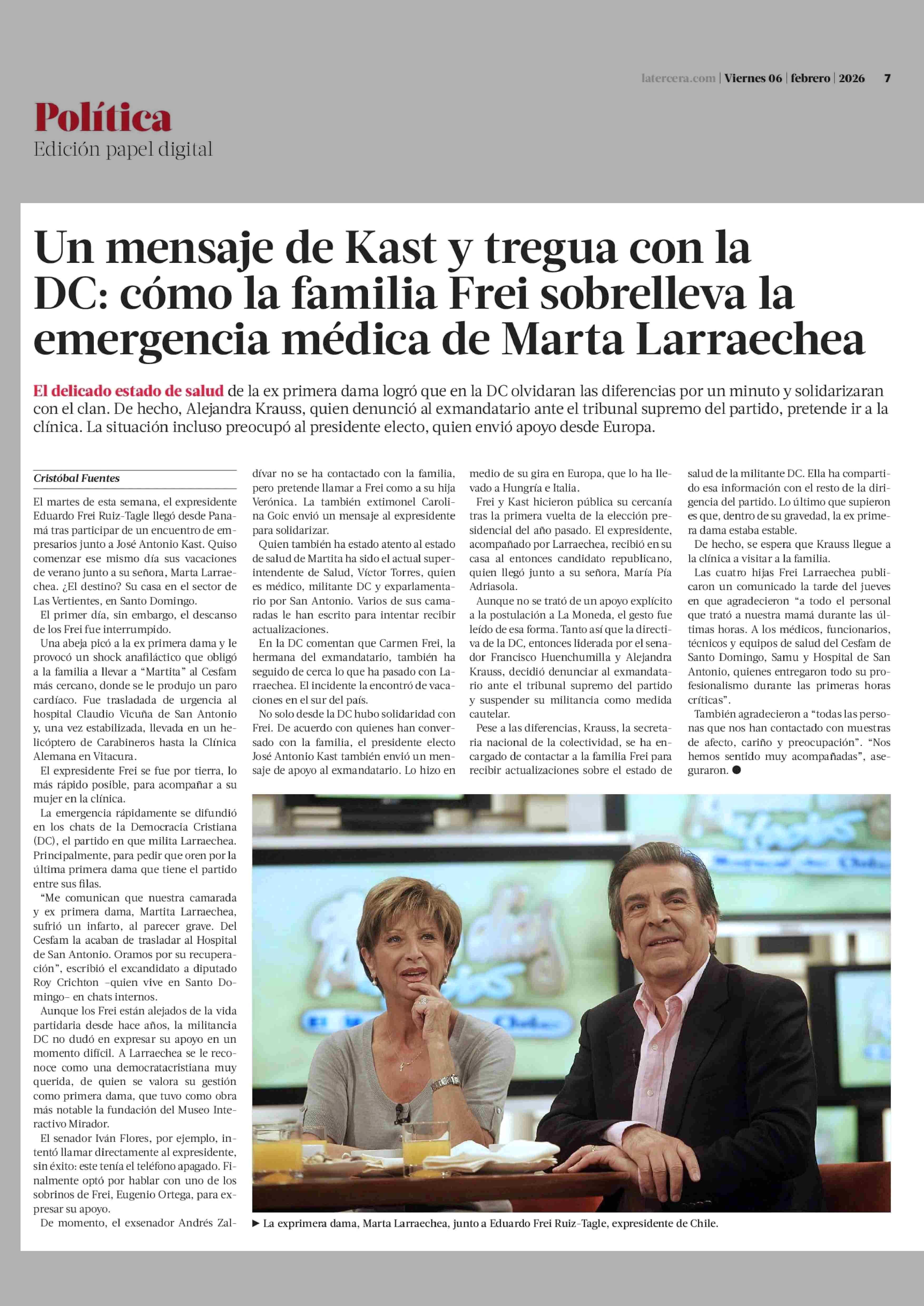 Título: Un mensaje de Kast y tregua con la DC: cómo la familia Frei sobrelleva la emergencia médica de Marta Larraechea