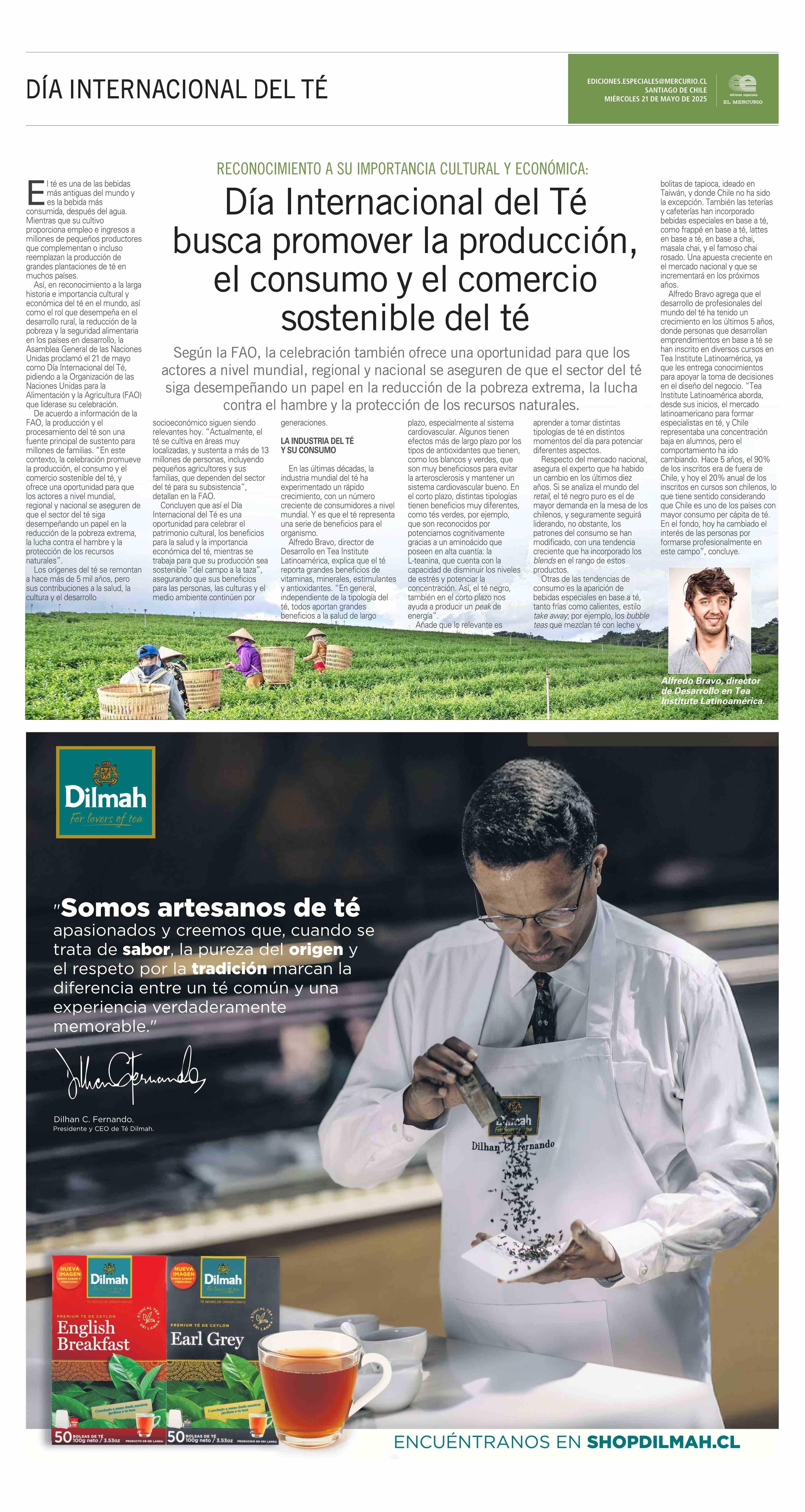 Día Internacional del Té busca promover la producción, el consumo y el comercio sostenible del té 21-05-2025 El Mercurio |