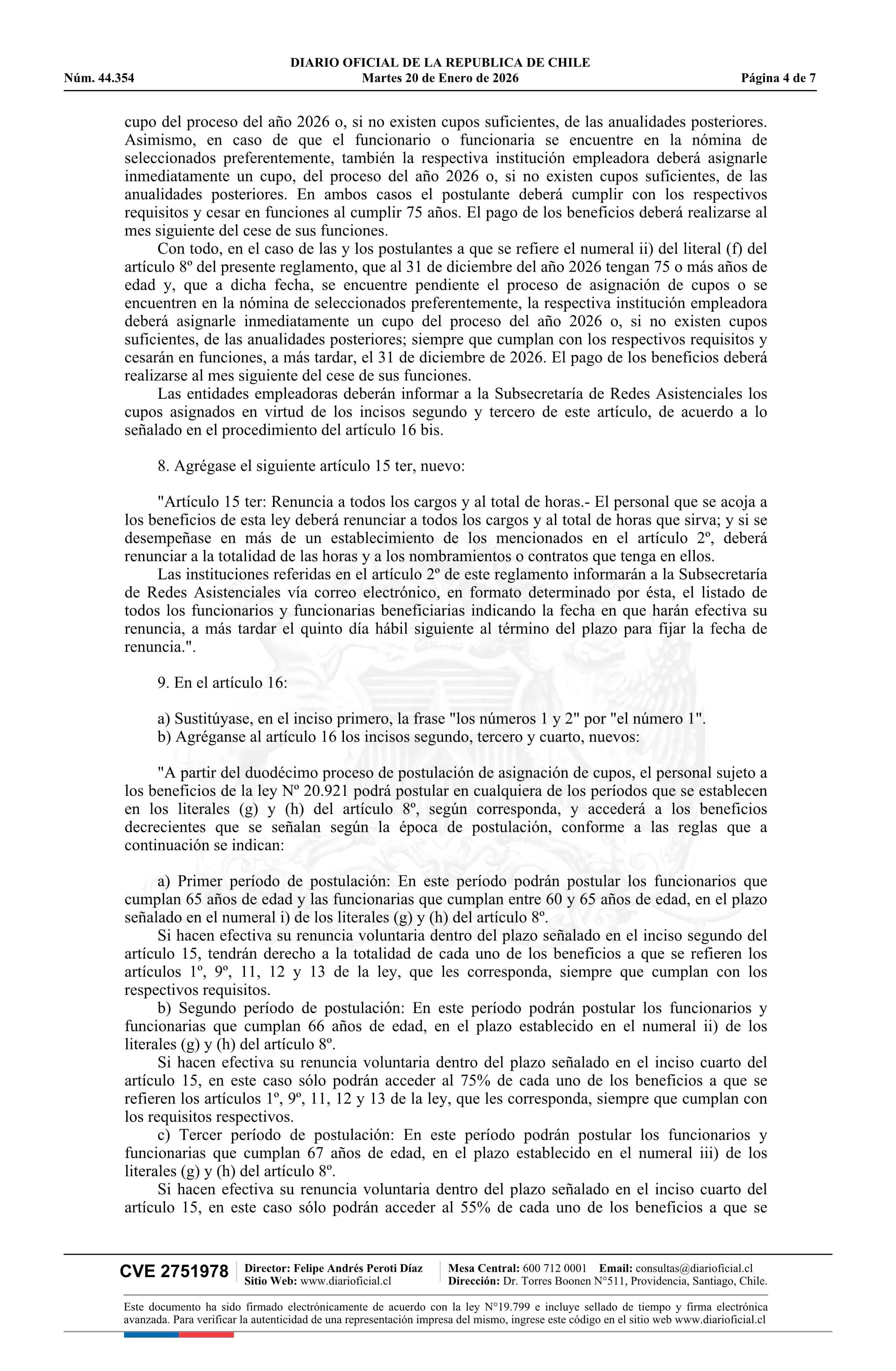 Título: Decreto número 17, de 2025.- Modifica decreto Nº 25, de 2016, reglamento para el otorgamiento de la bonificación por retiro voluntario establecida en la Ley Nº 20.921