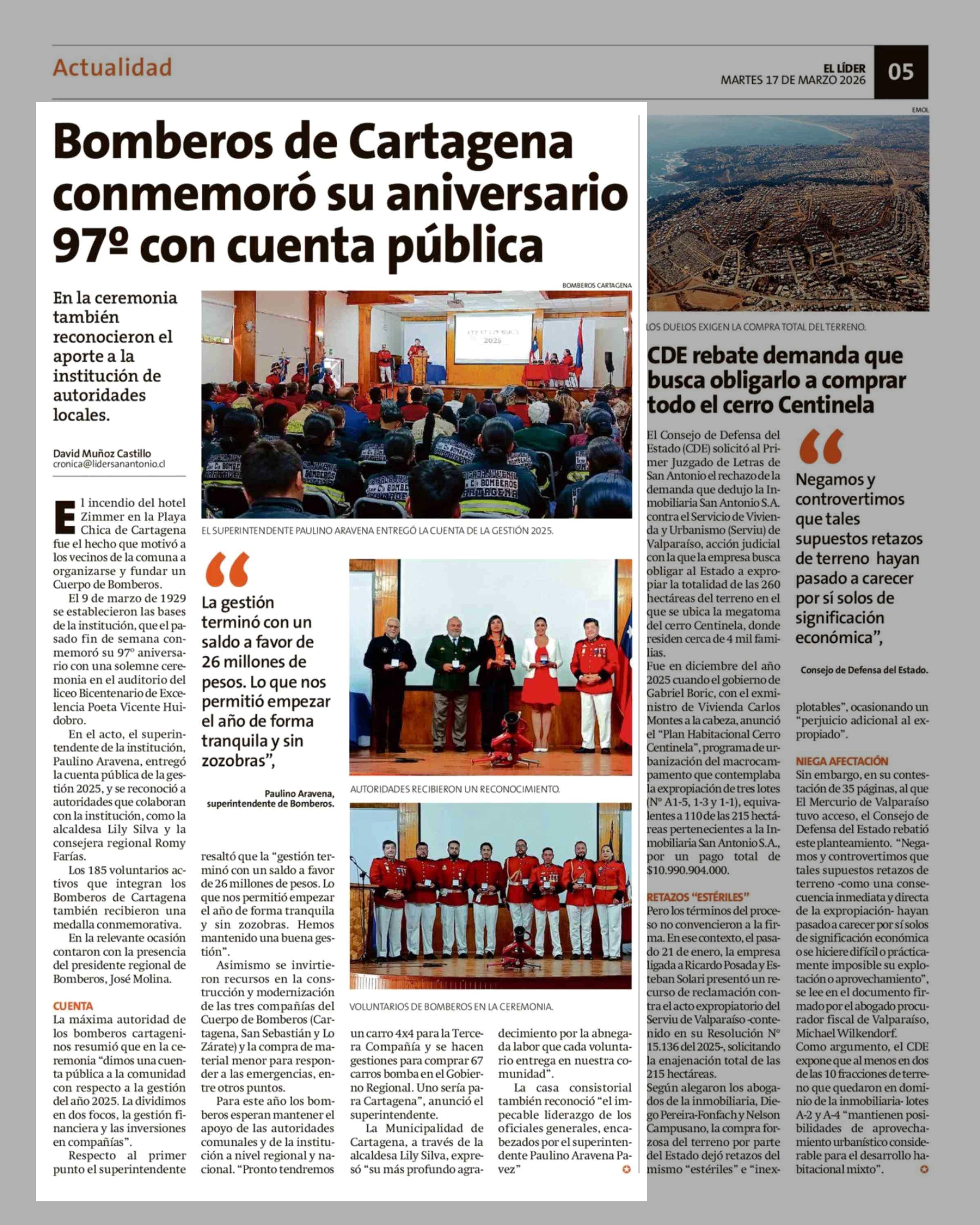 Título: Bomberos de Cartagena conmemoró su aniversario 97º con cuenta pública