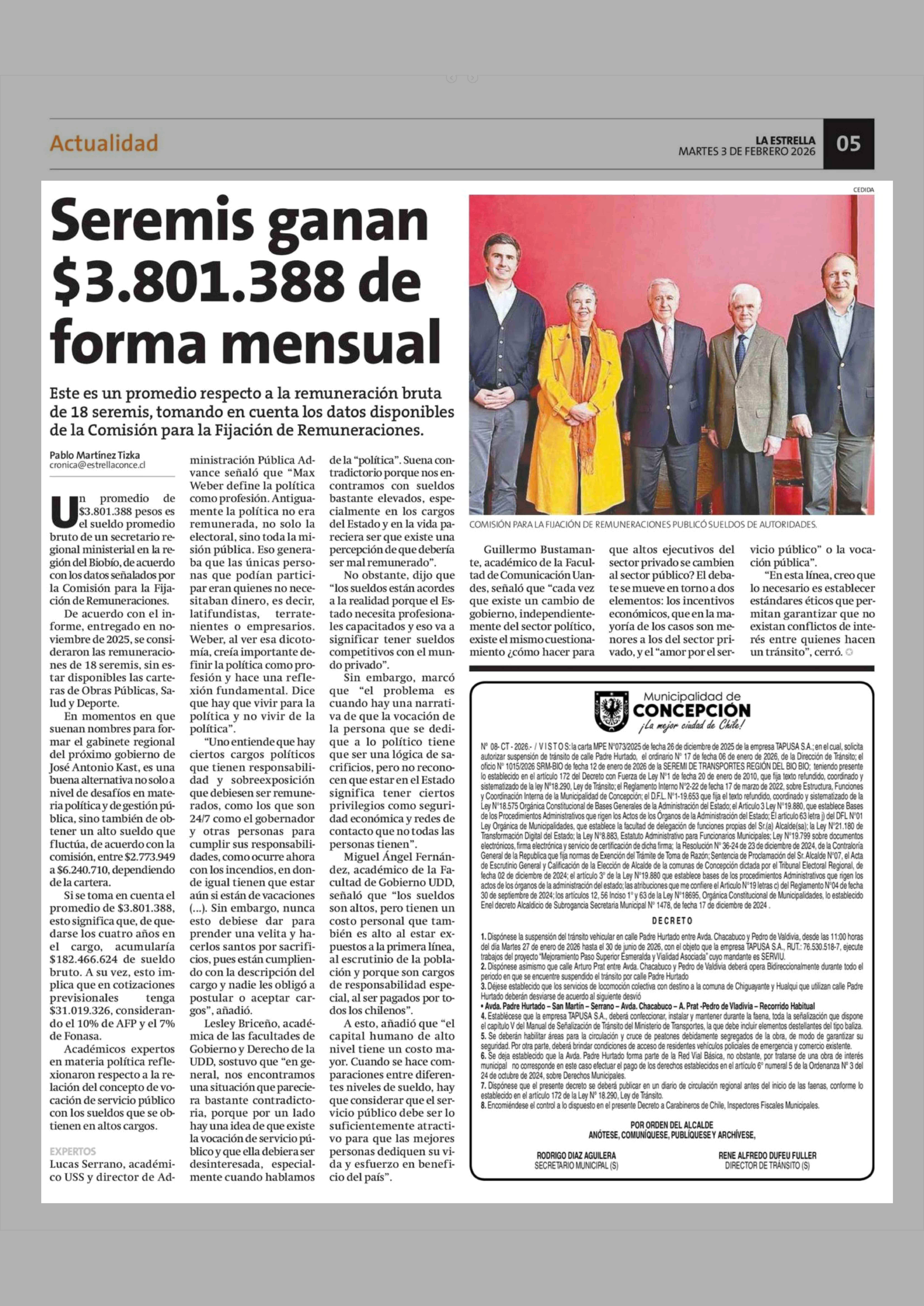 Seremis ganan $3.801.388 de forma mensual 03-02-2026 La Estrella de Concepción |