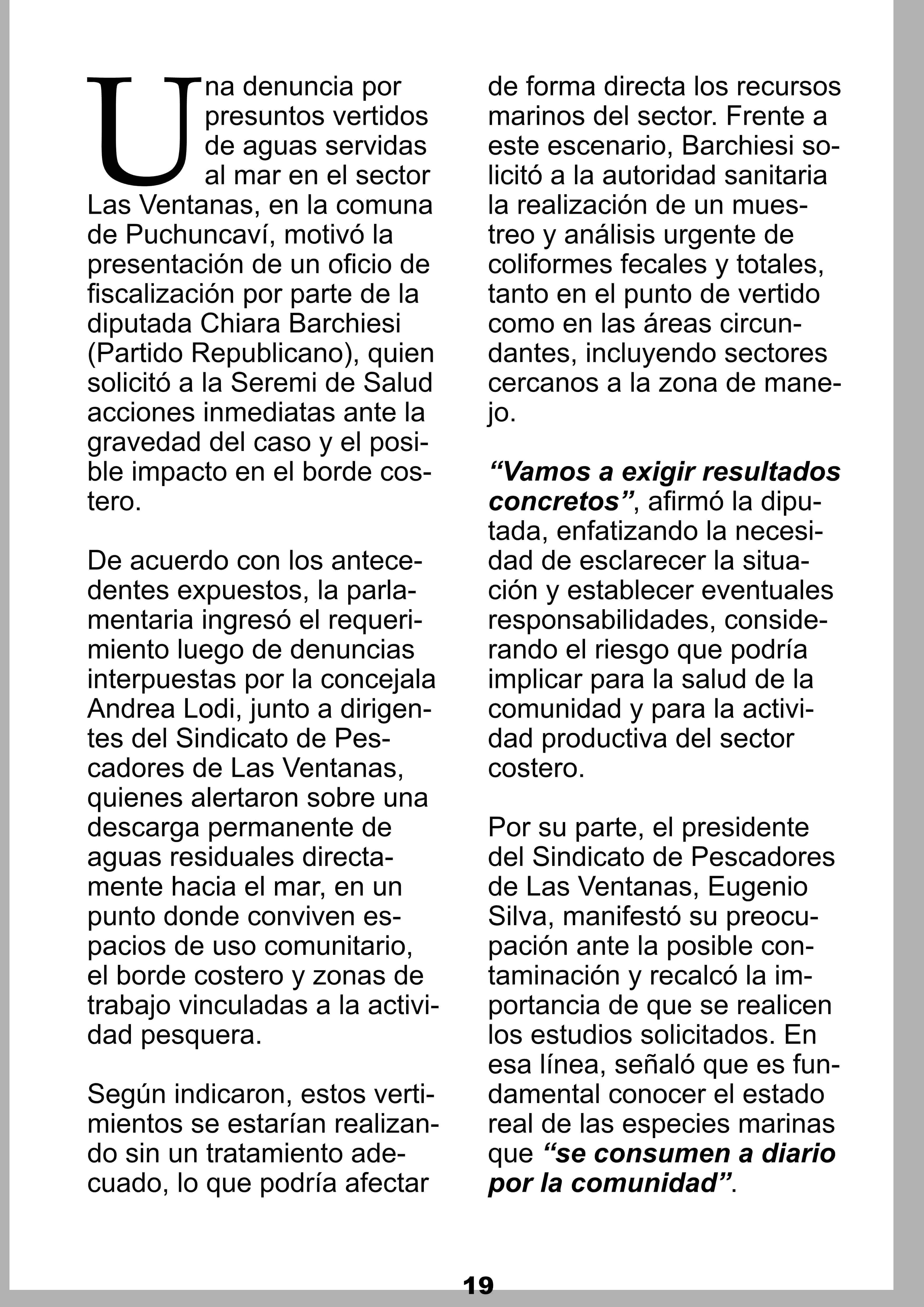 | Título: | Pescadores y diputada alertan en Puchuncaví por vertidos de aguas residuales en Las Ventanas |