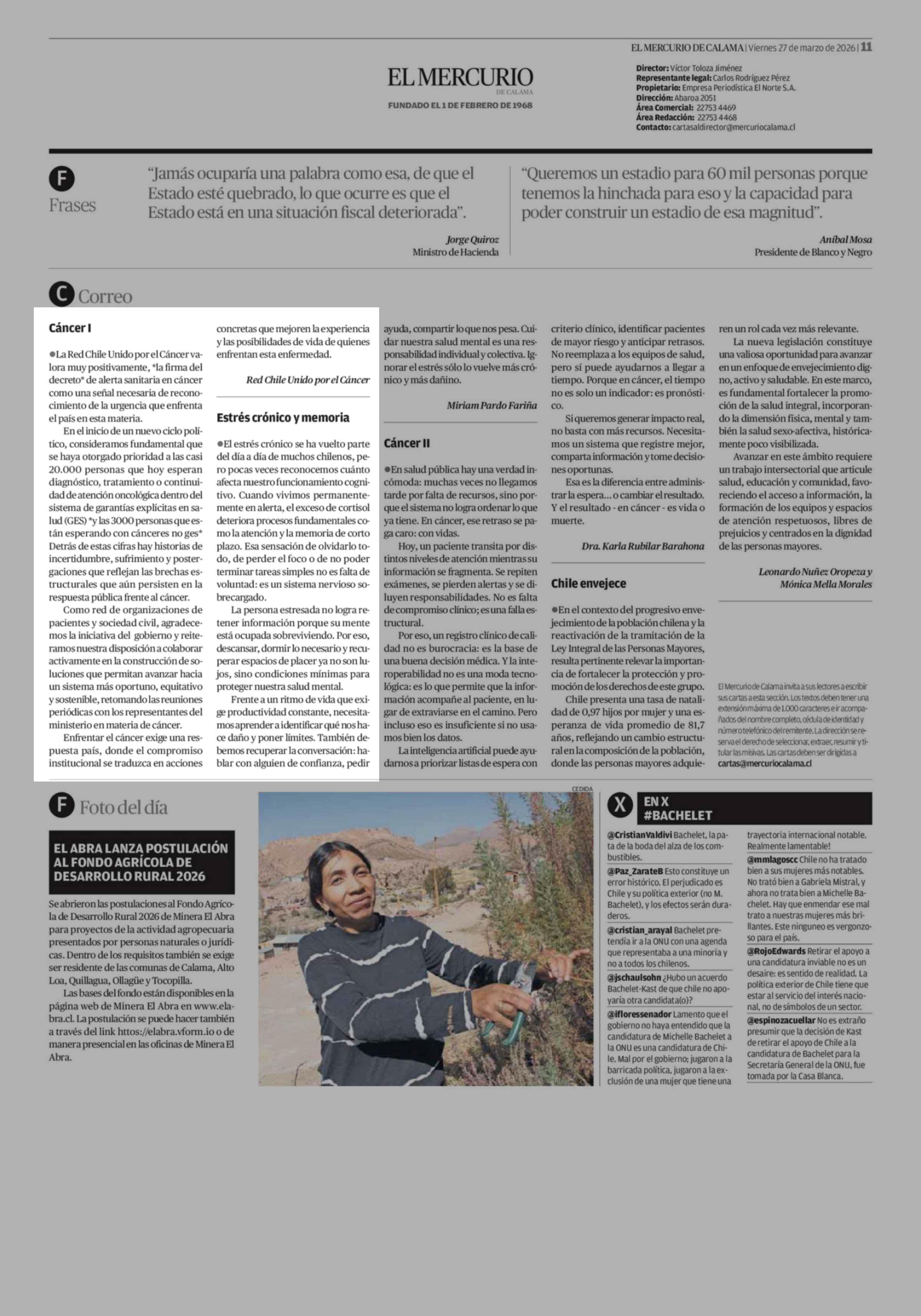 Cartas: Cáncer I 27-03-2026 El Mercurio de Calama |
