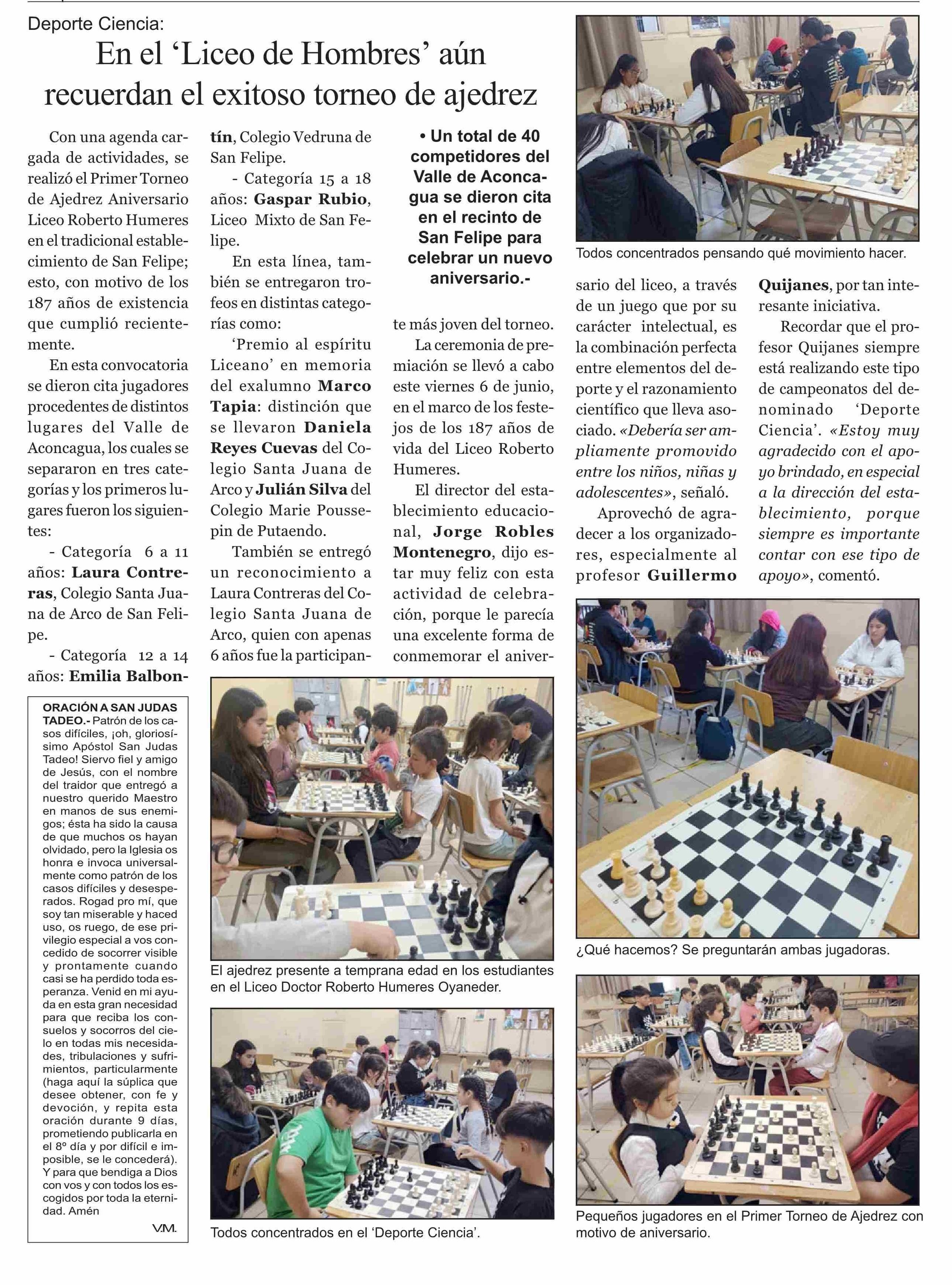 En el “Liceo de Hombres” aún recuerdan el exitoso torneo de ajedrez 13-06-2025 El Trabajo |
