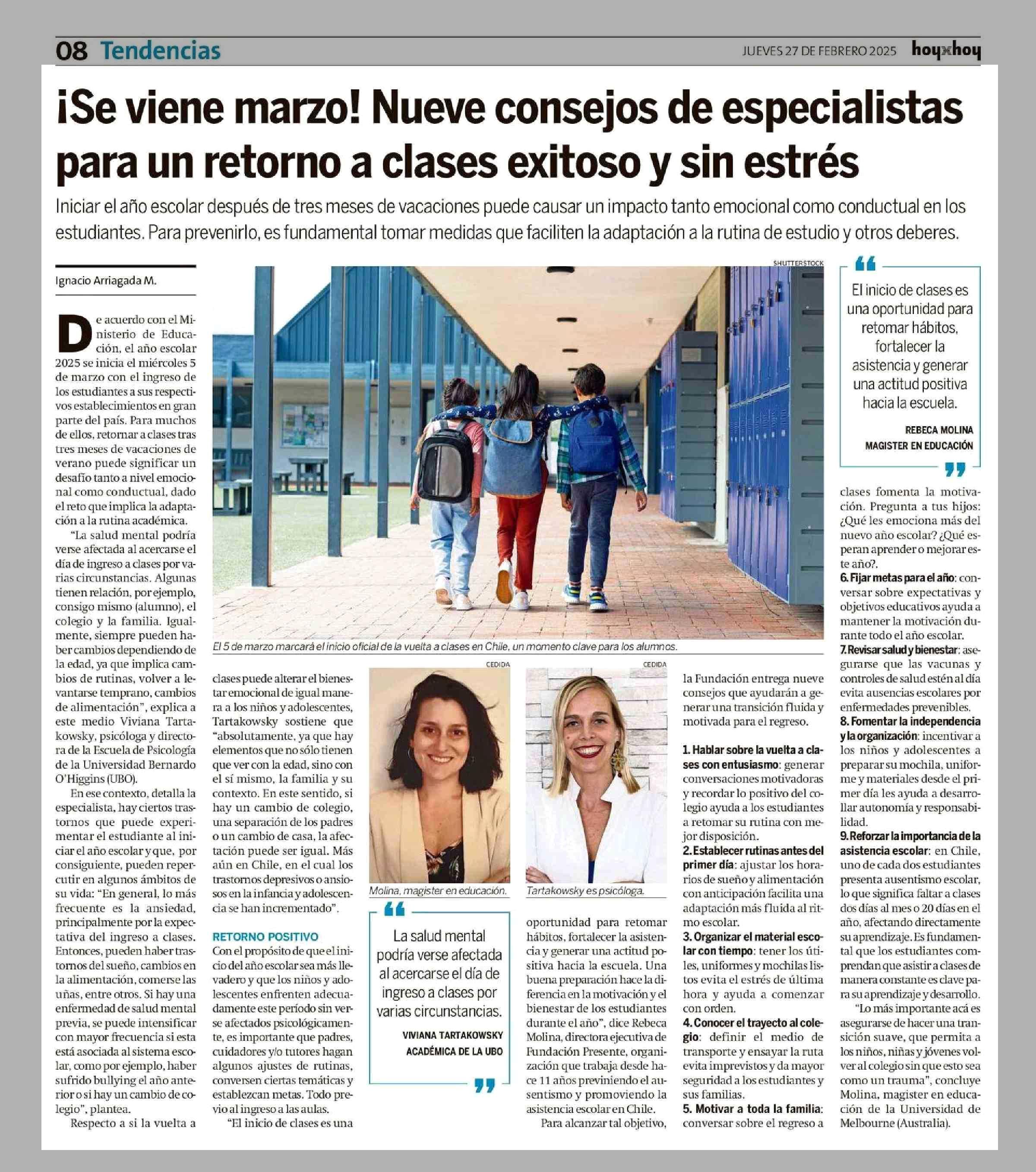¡Se viene marzo! Nueve consejos de especialistas para un retorno a clases exitoso y sin estrés 27-02-2025 Hoy x Hoy Antofagasta |