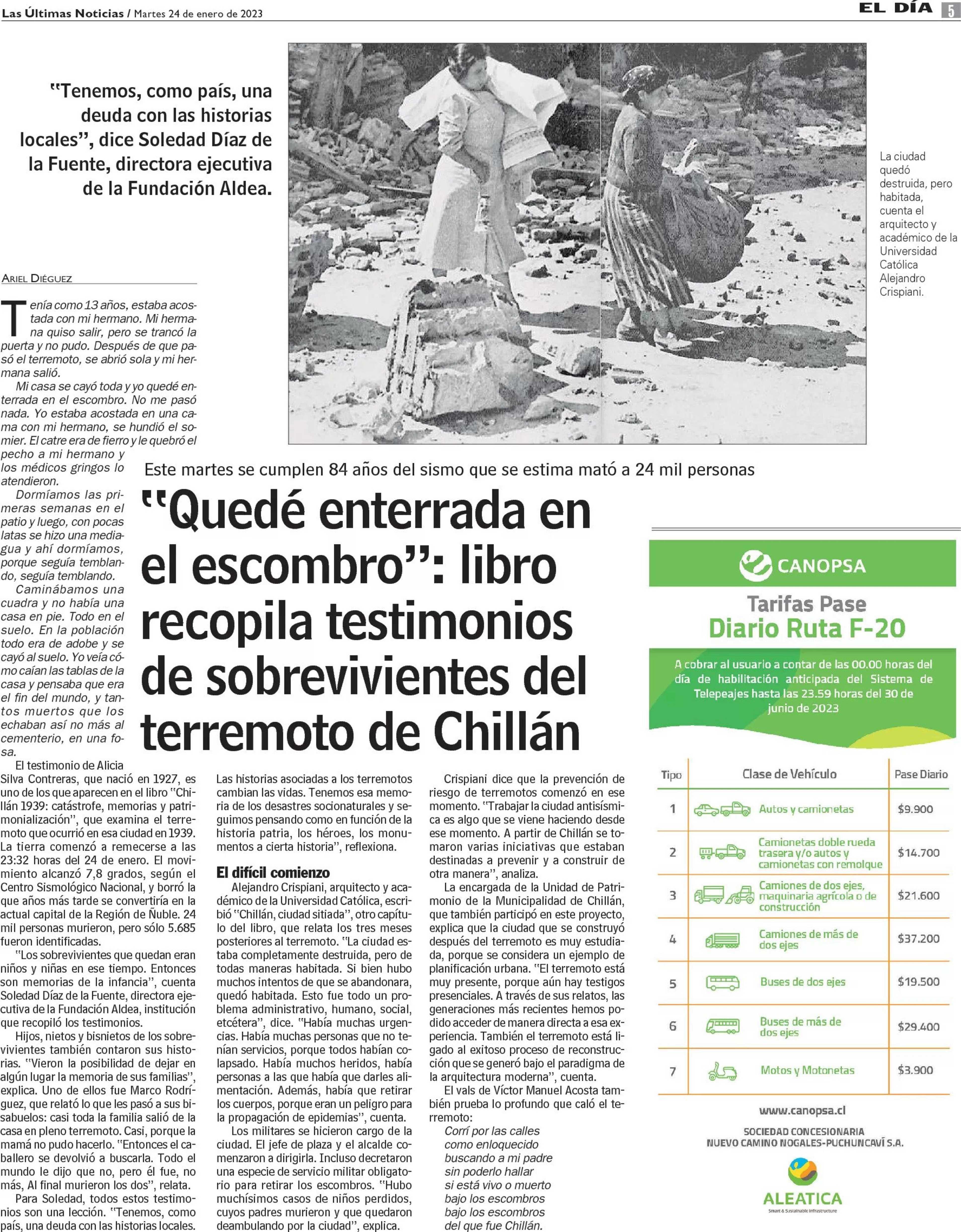 "Quedé enterrada en el escombro””: libro recopila testimonios de sobrevivientes del terremoto de Chillán 24-01-2023 Las Últimas Noticias |
