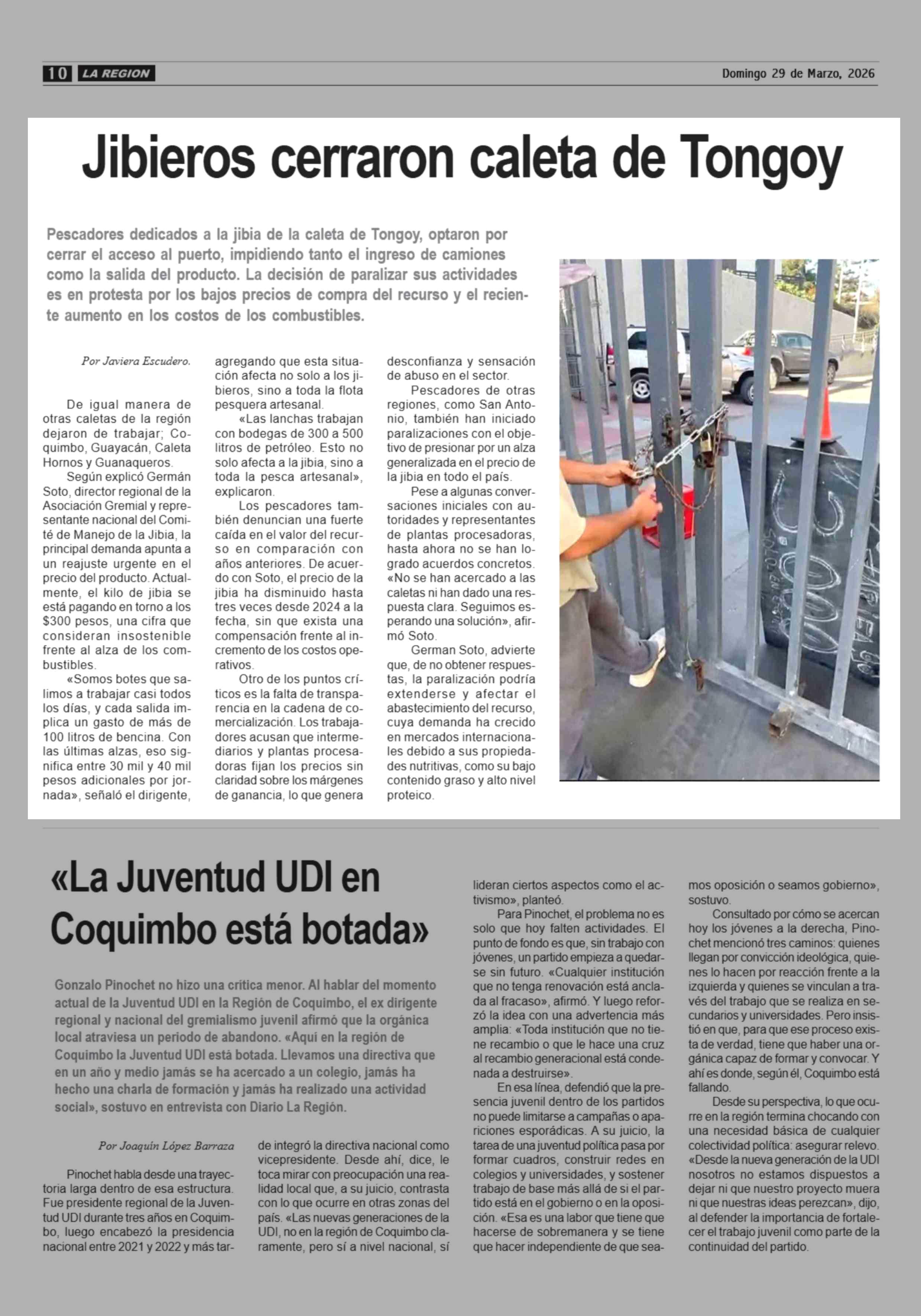 Jibieros cerraron caleta de Tongoy 29-03-2026 Diario la Región |