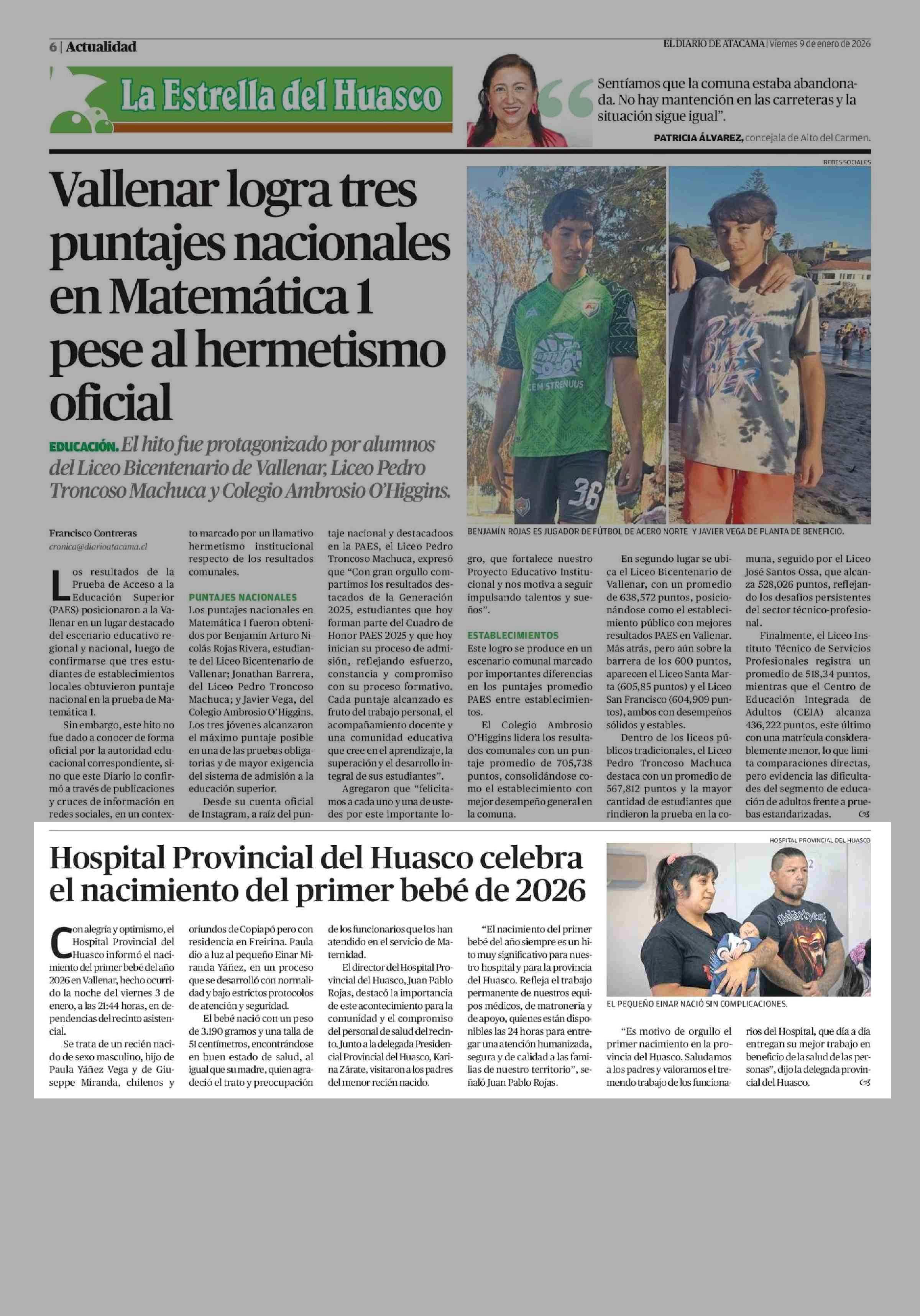 Hospital Provincial del Huasco celebra el nacimiento del primer bebé de 2026 09-01-2026 El Diario de Atacama |