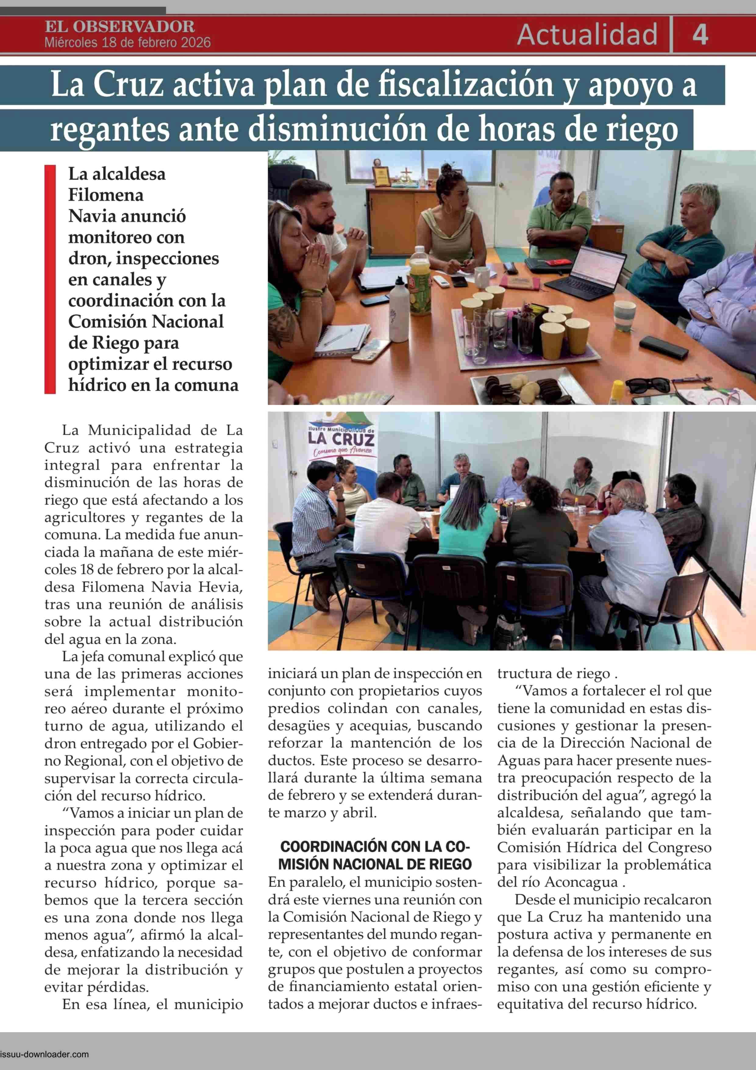 La Cruz activa plan de fiscalización y apoyo a regantes ante disminución de horas de riego 18-02-2026 El Observador Vespertino |