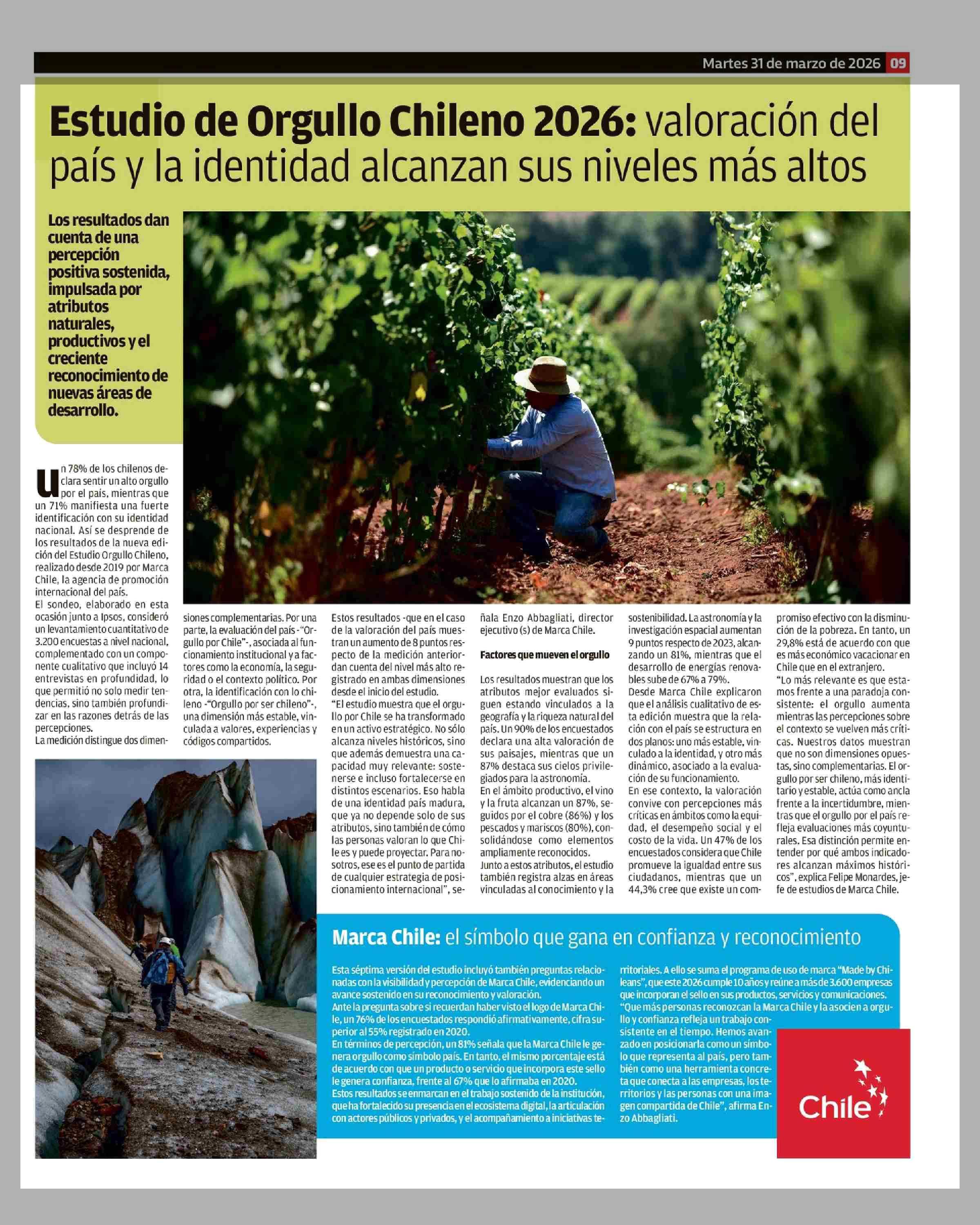 Título: Estudio de Orgullo Chileno 2026: valoración del país y la identidad alcanzan sus niveles más altos