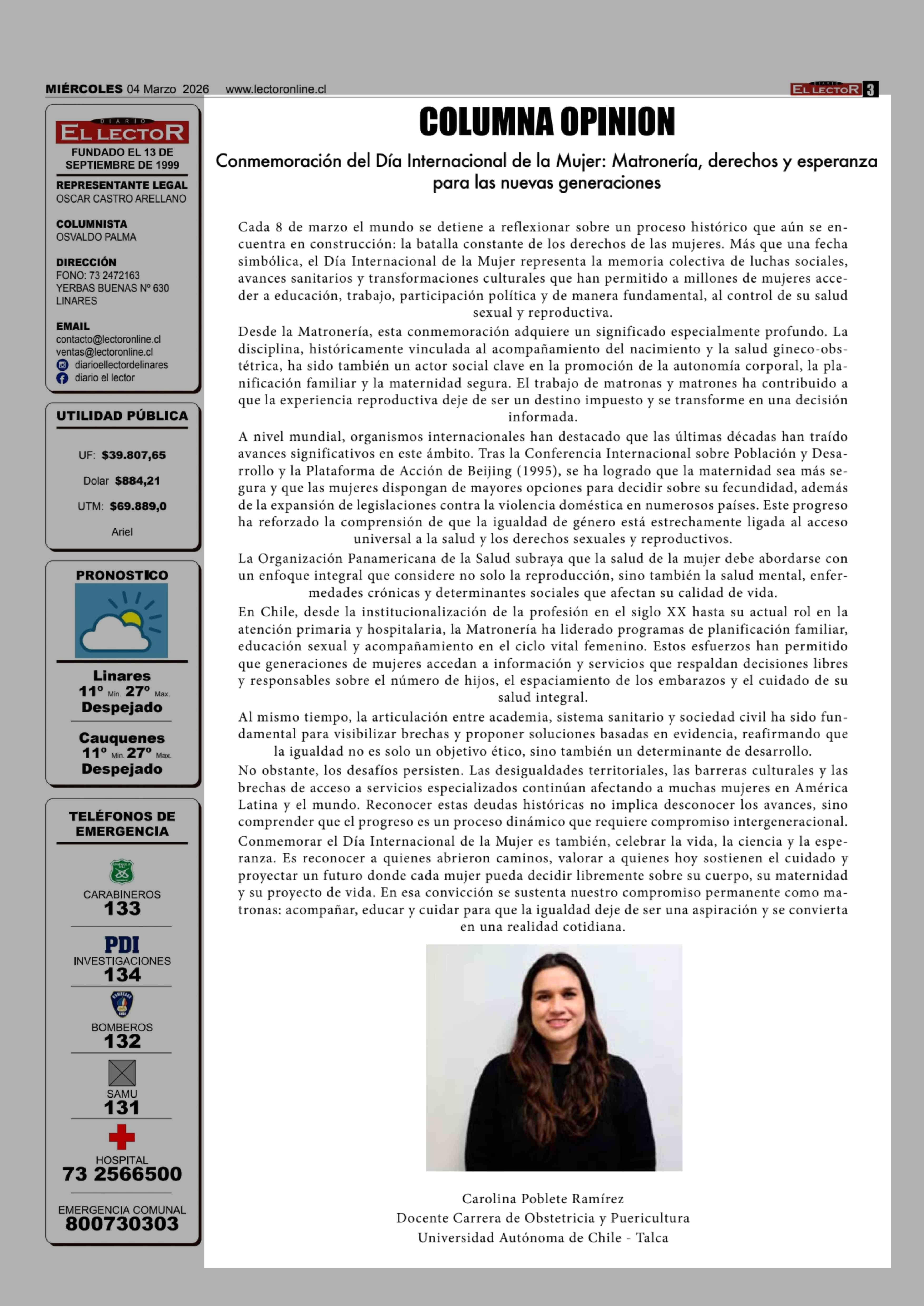 Fecha: 04-03-2026 Sector: Columnas de Opinión Región: Región del Maule