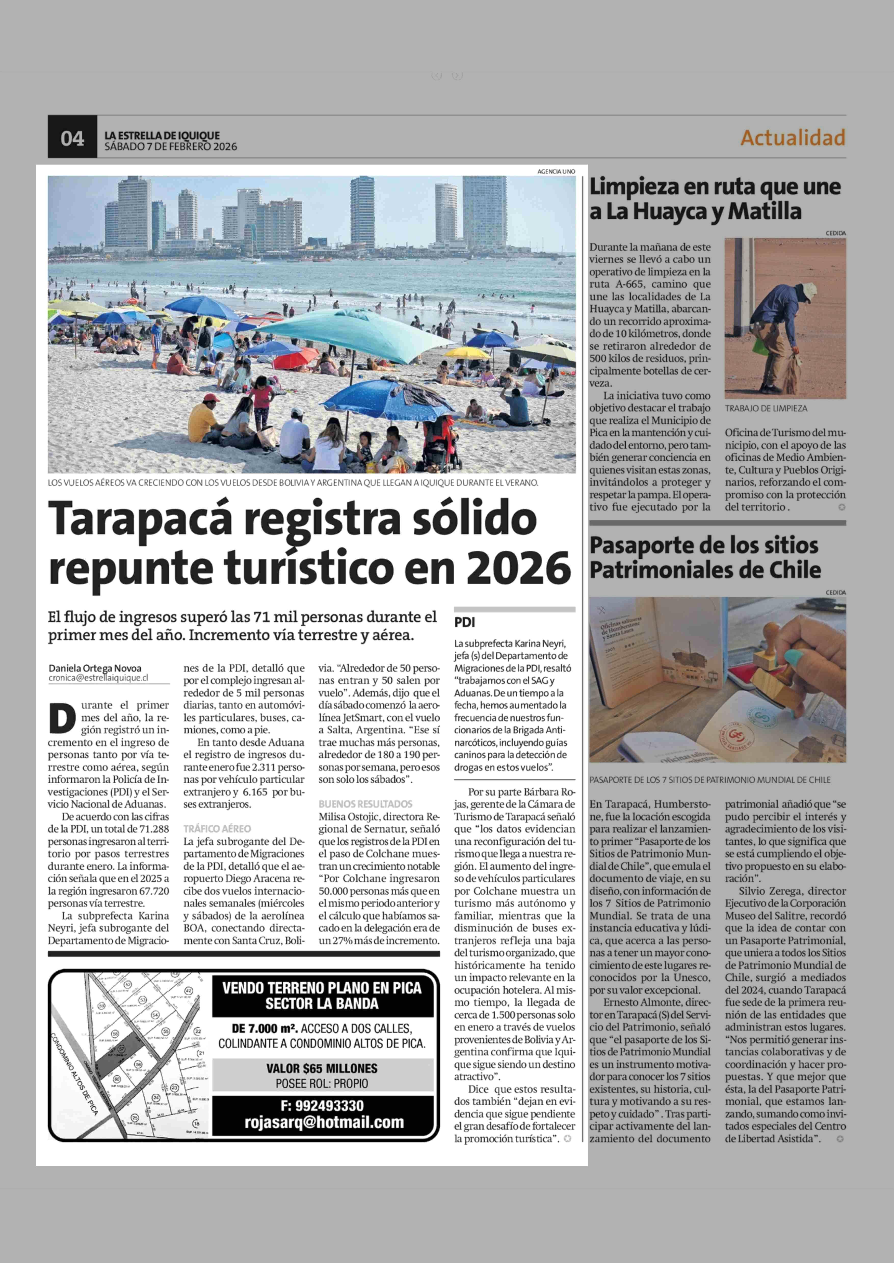 | Fecha: | 07-02-2026 | Sector: | Noticia general | Región: | Región de Tarapacá |