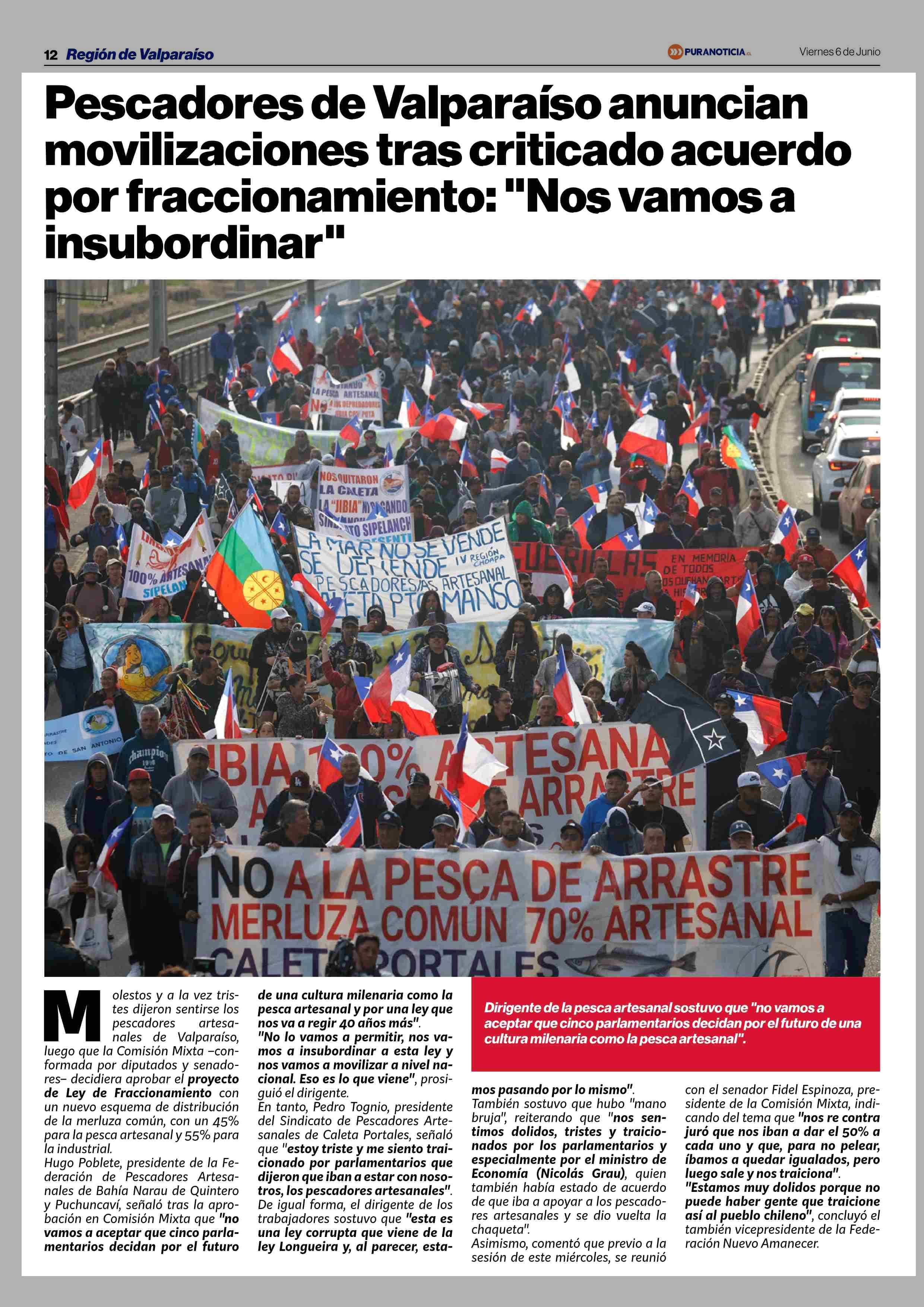 Pescadores de Valparaíso anuncian movilizaciones tras criticado acuerdo por fraccionamiento: "Nos vamos a insubordinar” 06-06-2025 Puranoticia.cl |