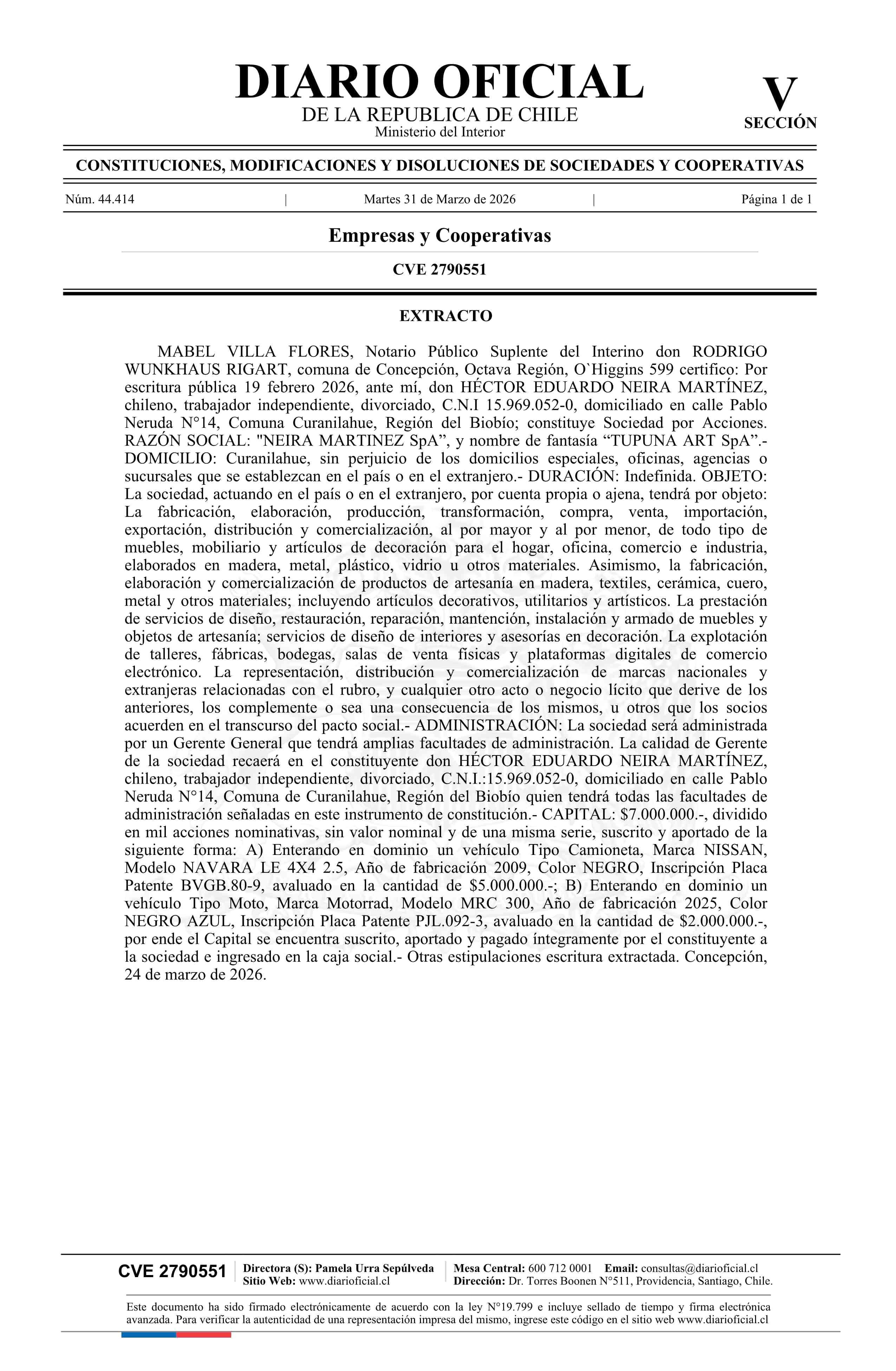 Título: Tupuna Art SpA