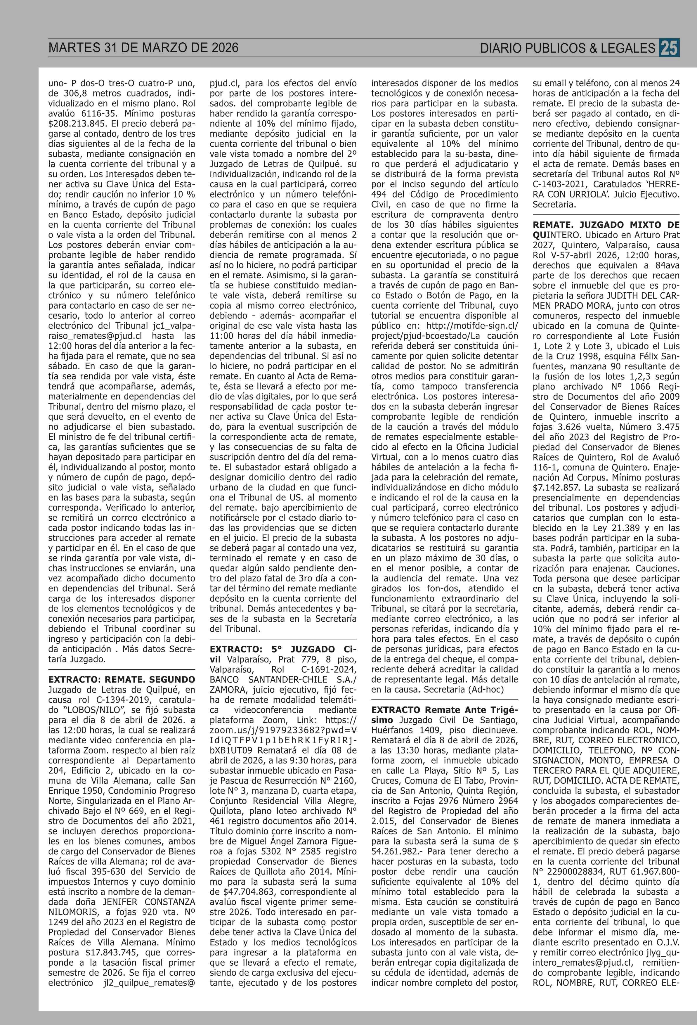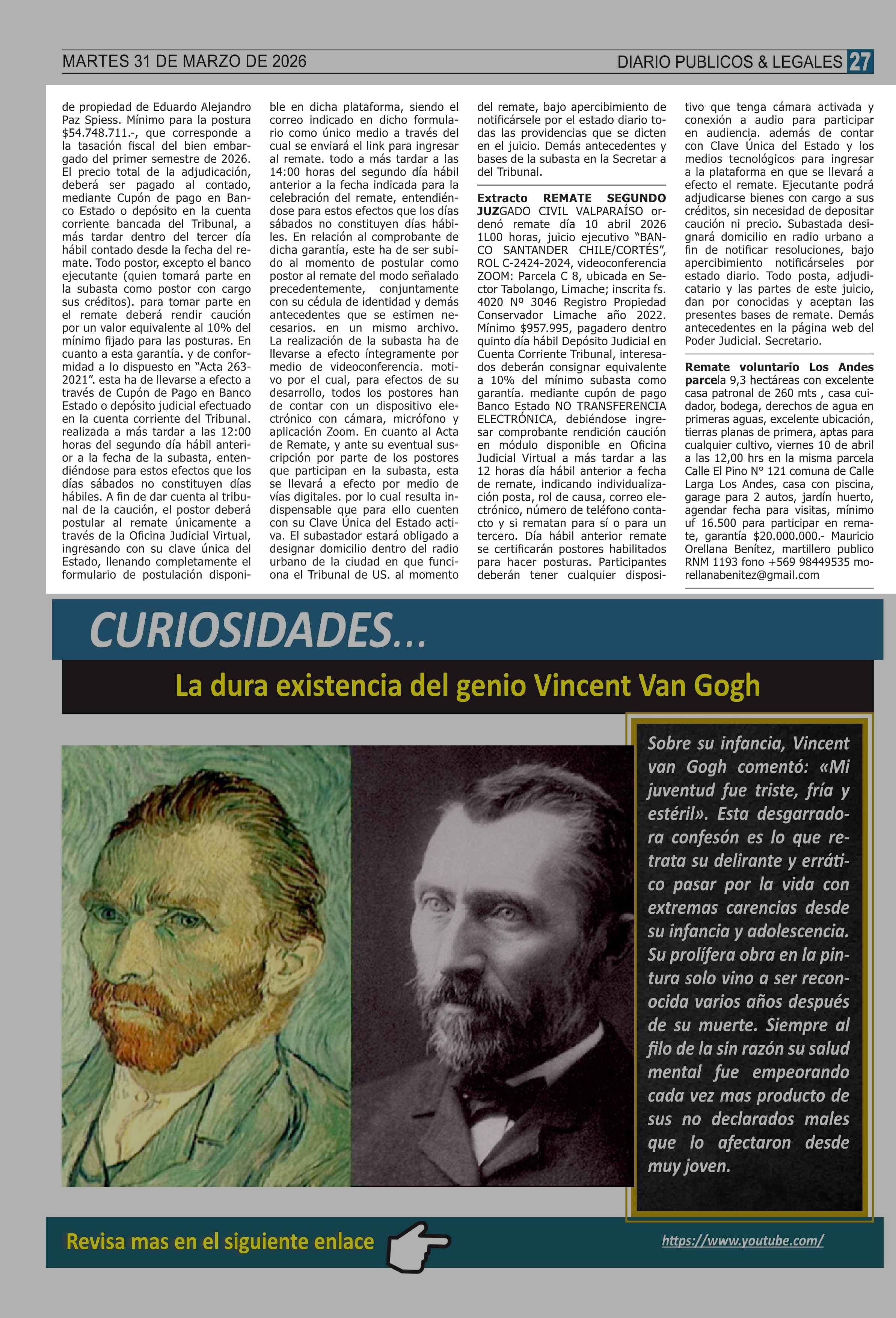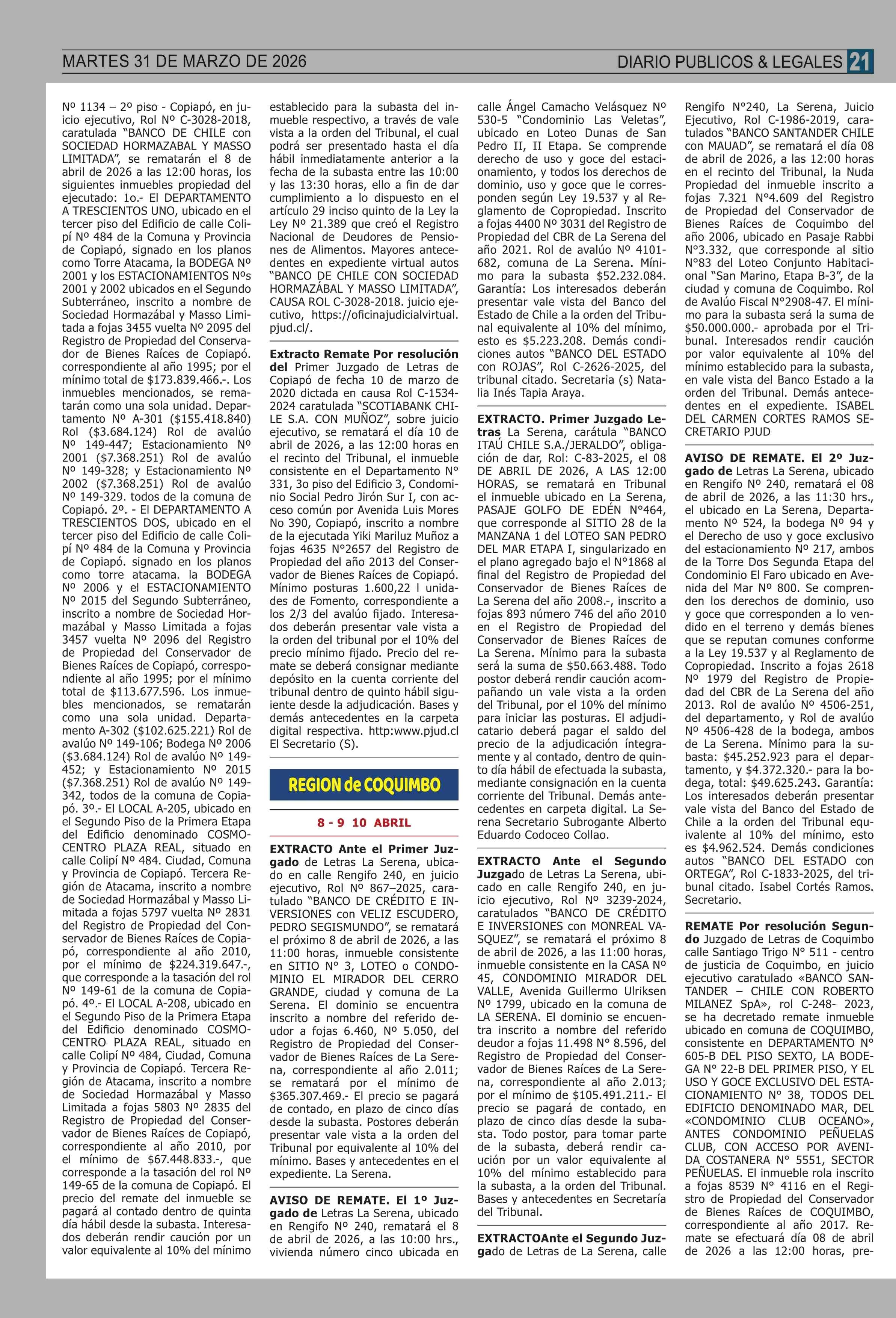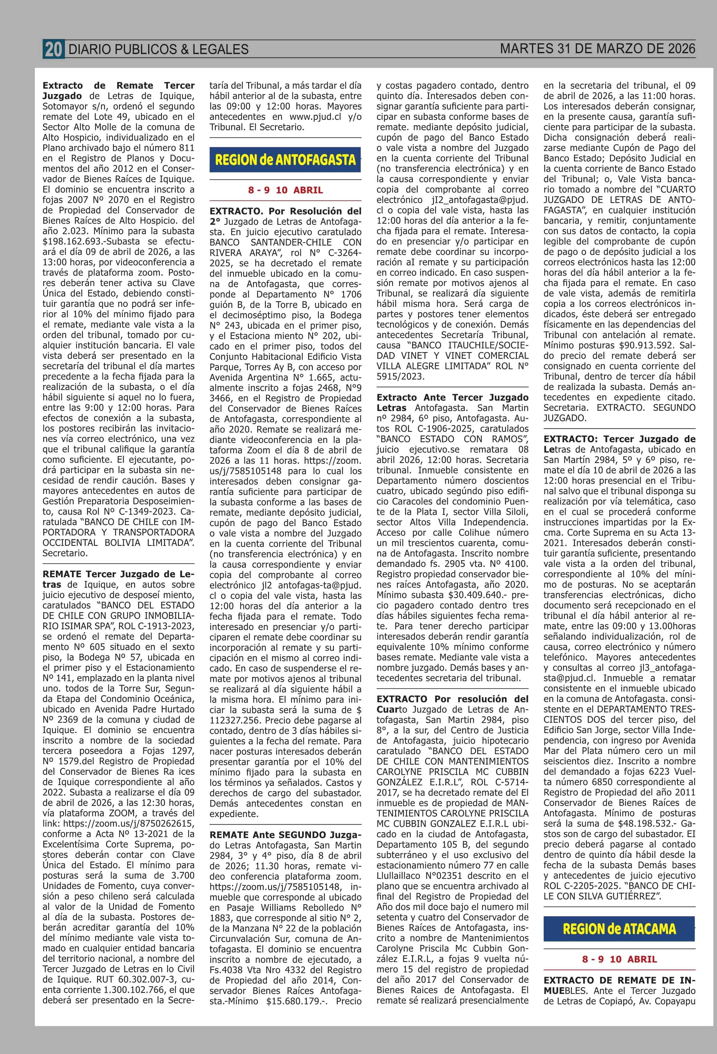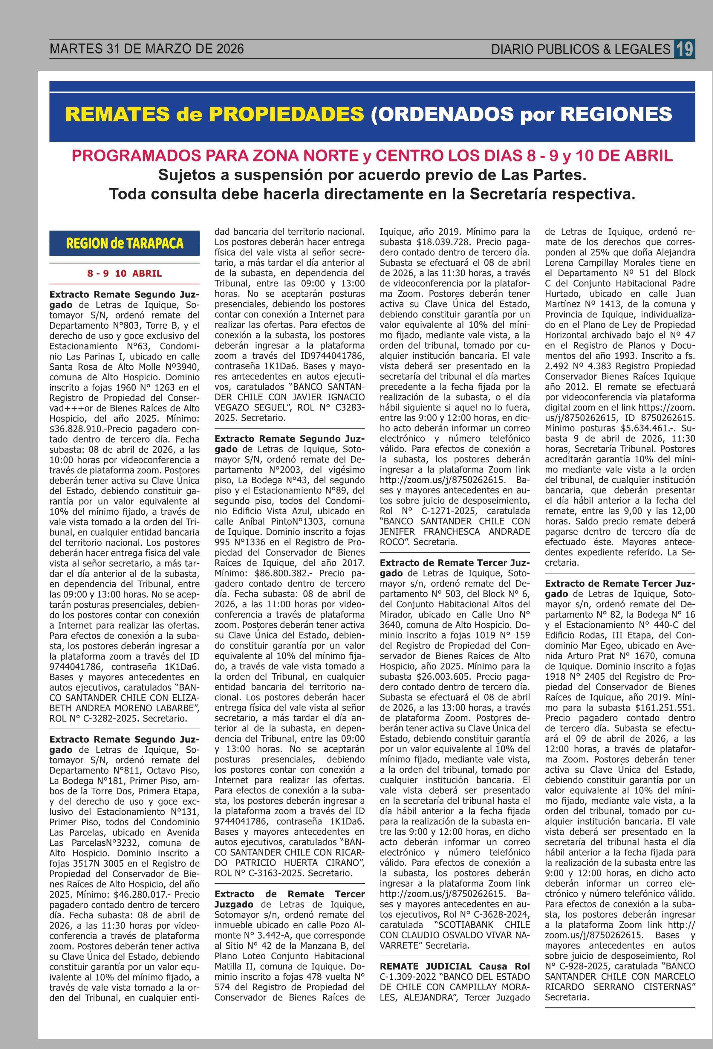 | Fecha: | 31-03-2026 | Sector: | Remates | Región: | Región Metropolitana de Santiago |