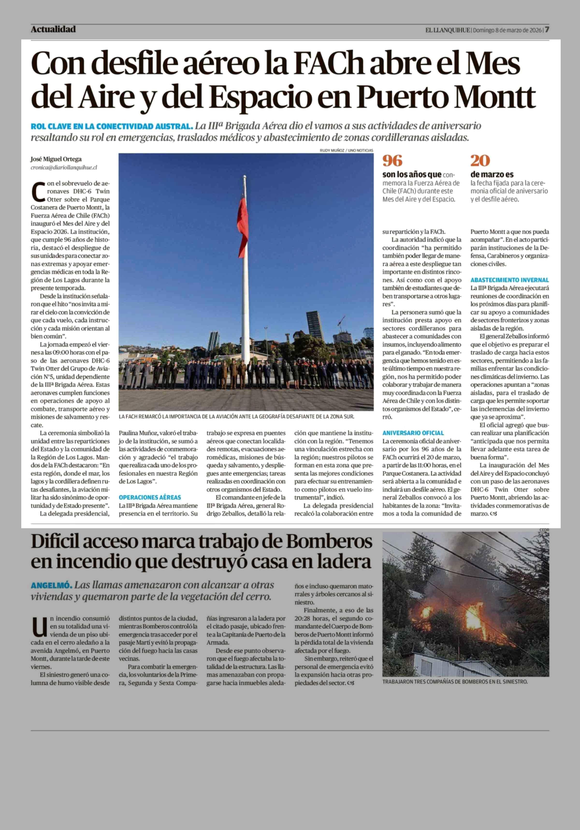 Con desfile aéreo la FACh abre el Mes del Aire y del Espacio en Puerto Montt 08-03-2026 El Llanquihue |