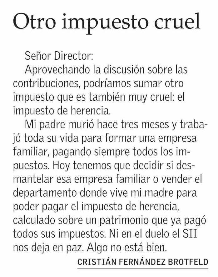 CARTAS: Otro impuesto cruel 22-06-2025 El Mercurio |