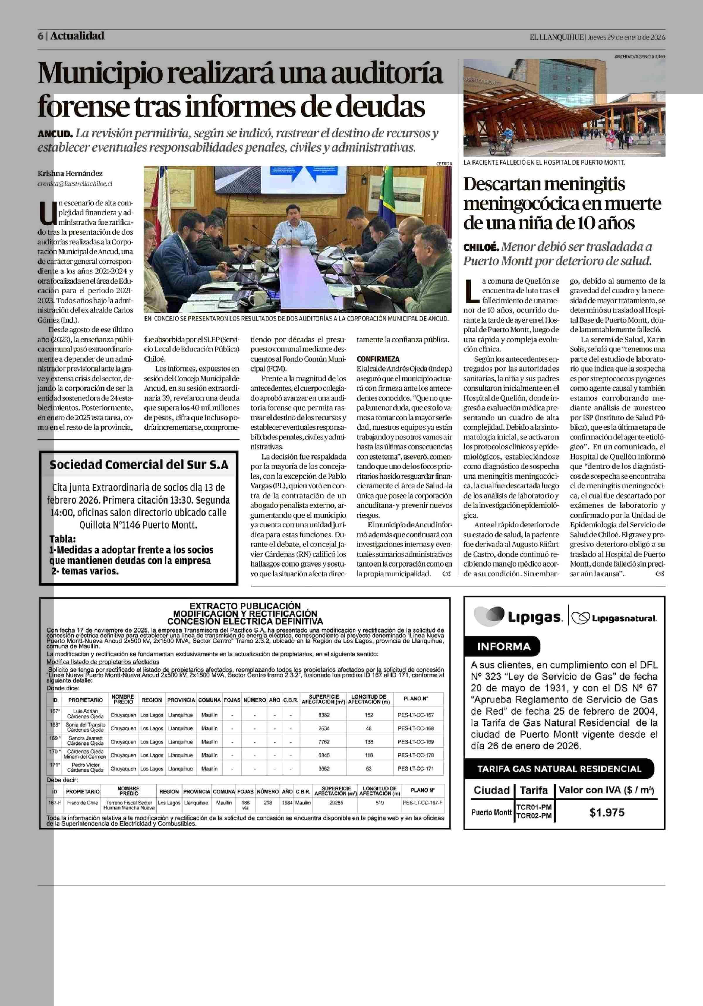 Municipio realizará una auditoría forense tras informes de deudas 29-01-2026 El Llanquihue |