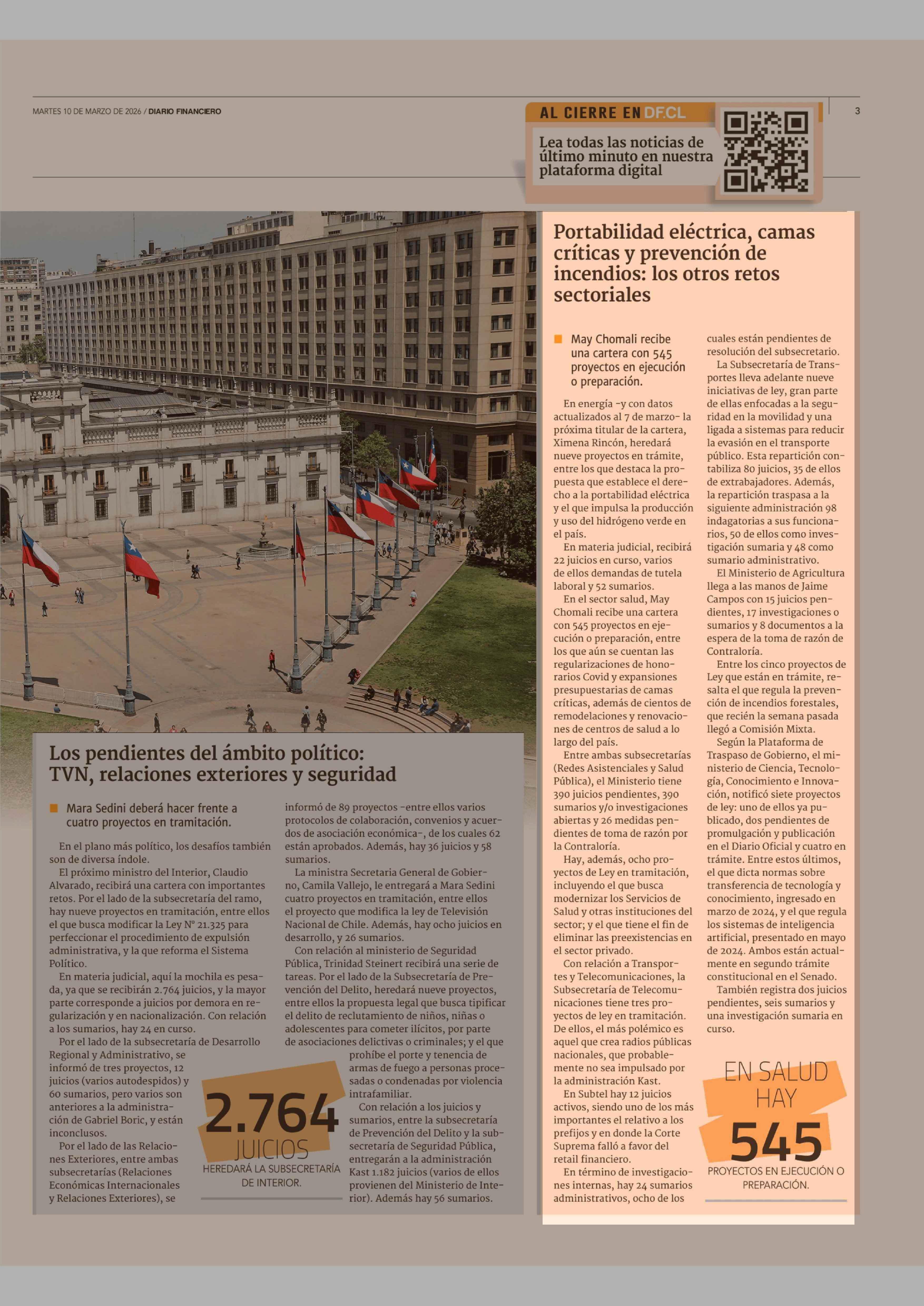 Portabilidad eléctrica, camas críticas y prevención de incendios: los otros retos sectoriales 10-03-2026 Diario Financiero |