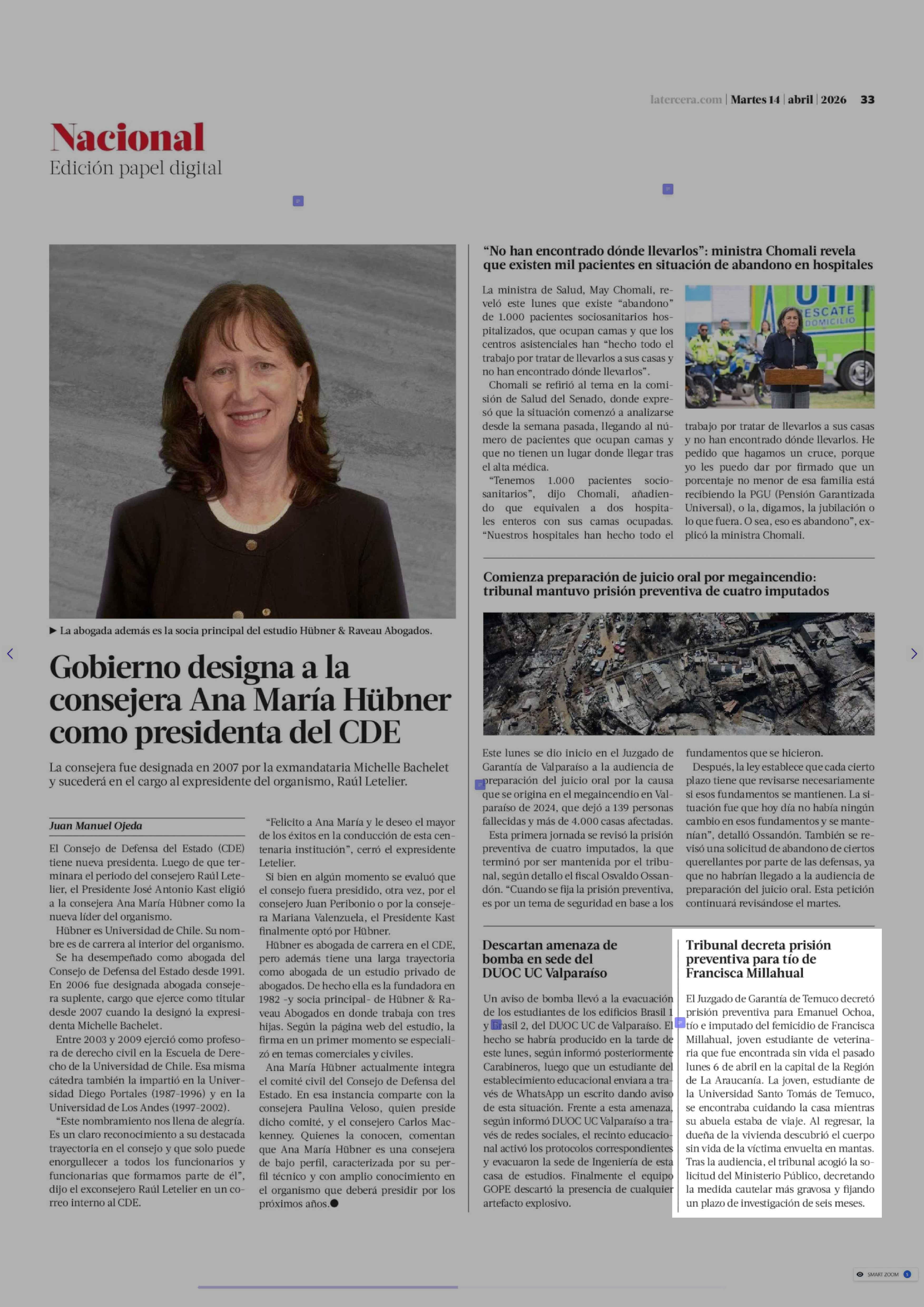 | Fecha: | 14-04-2026 | Sector: | Noticia general | Región: | Región Metropolitana de Santiago |