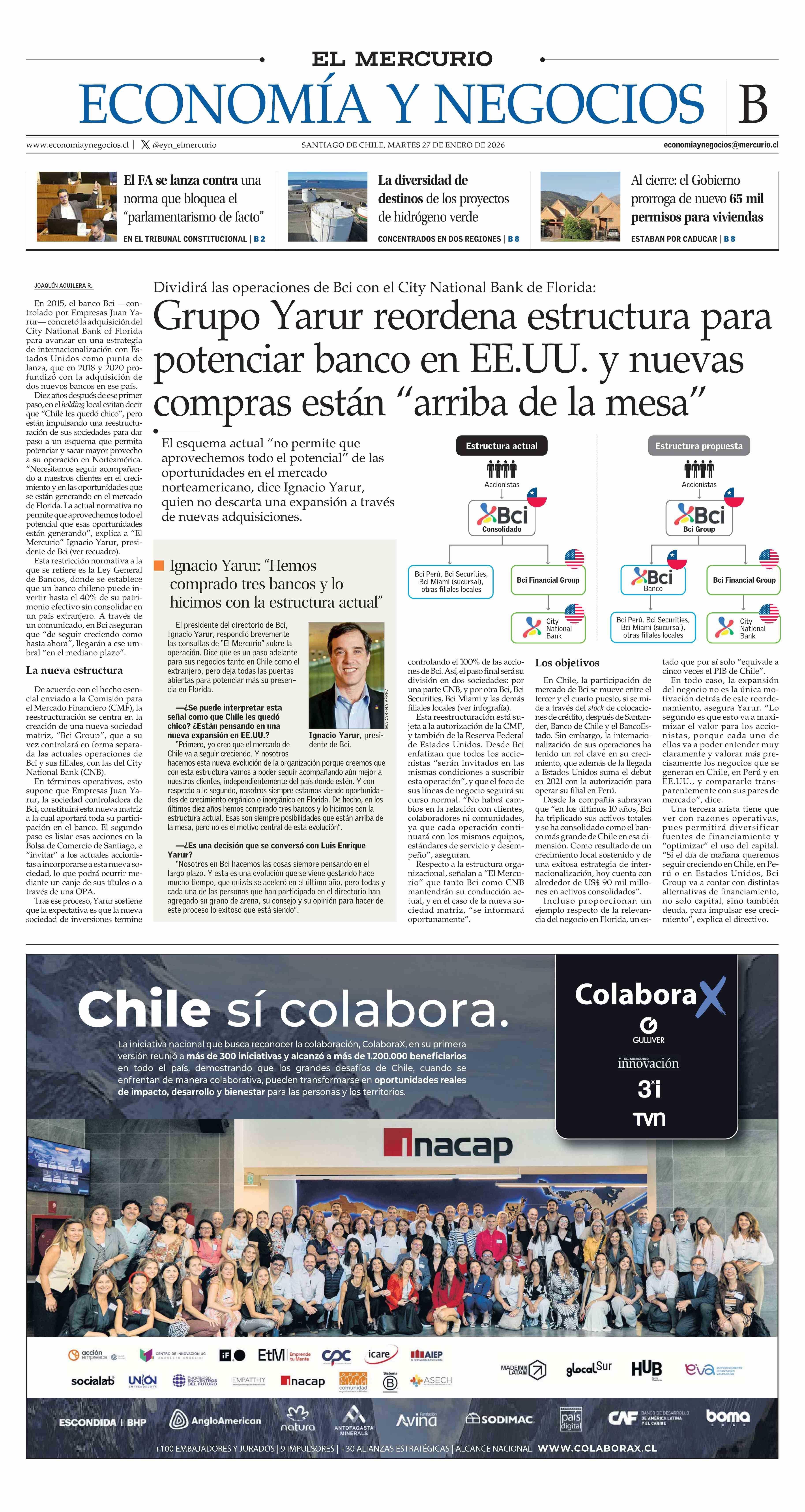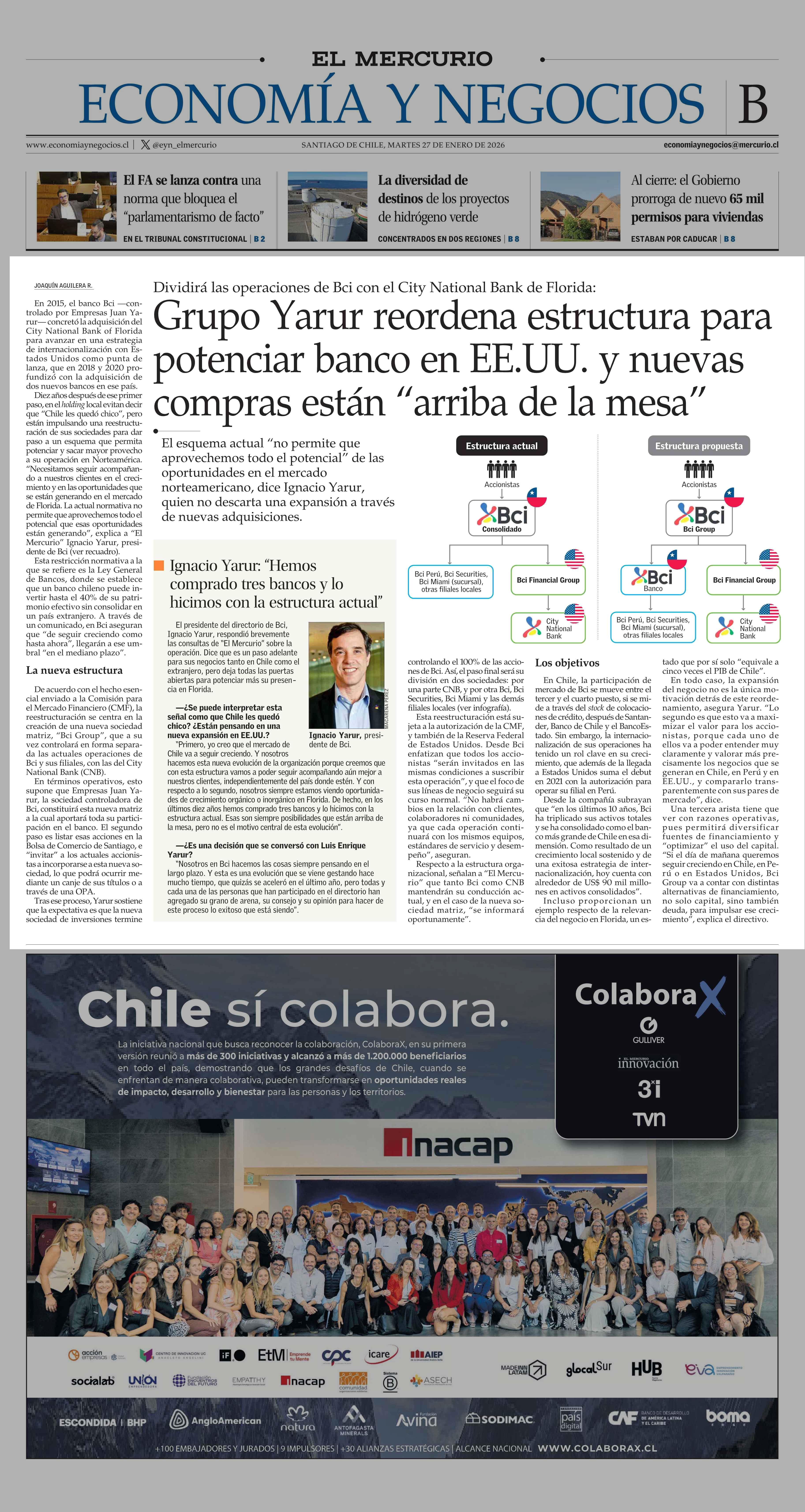 Grupo Yarur reordena estructura para potenciar banco en EE.UU. y nuevas compras están “arriba de la mesa” 27-01-2026 El Mercurio |