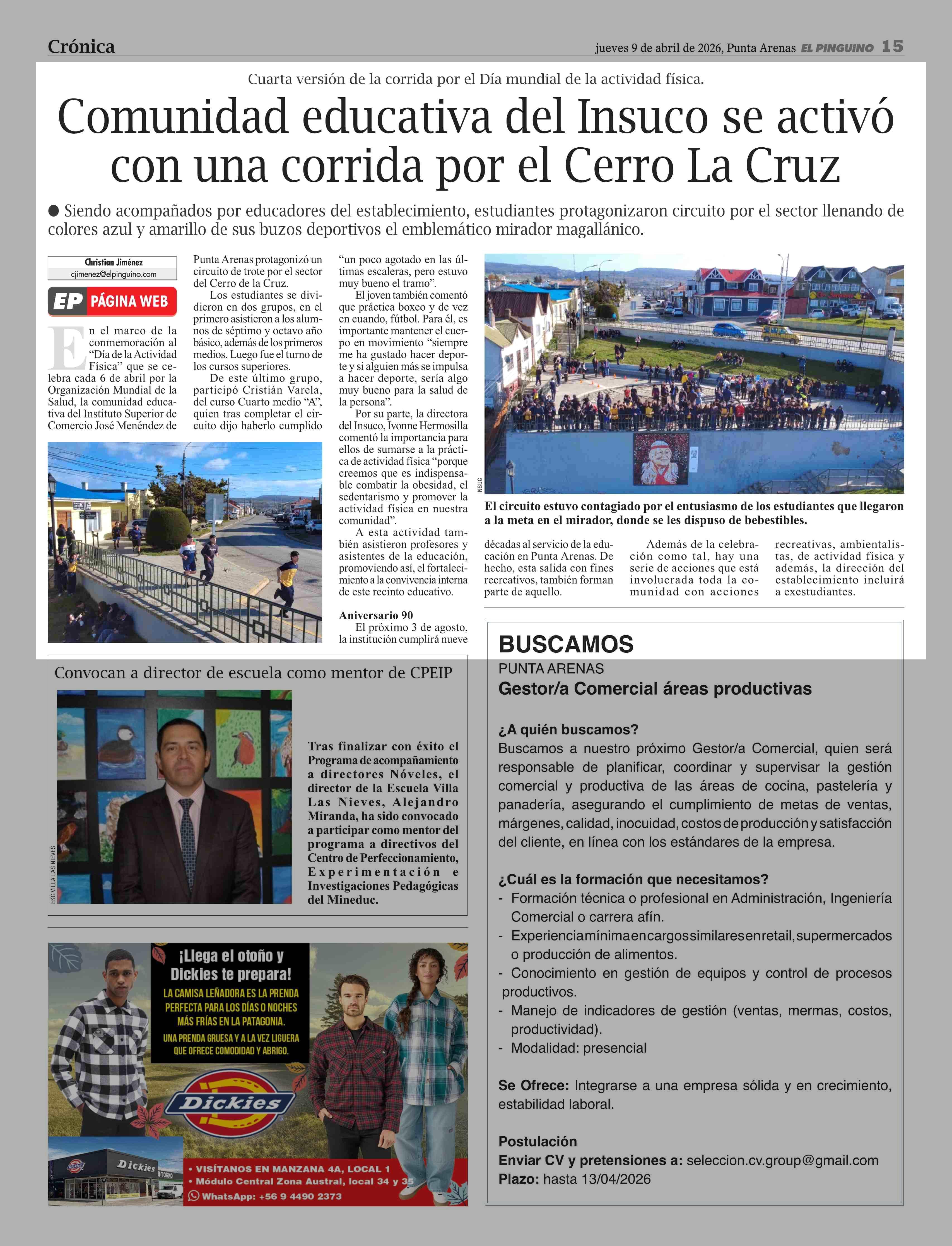 Comunidad educativa del Insuco se activó con una corrida por el Cerro La Cruz 09-04-2026 El Pingüino |