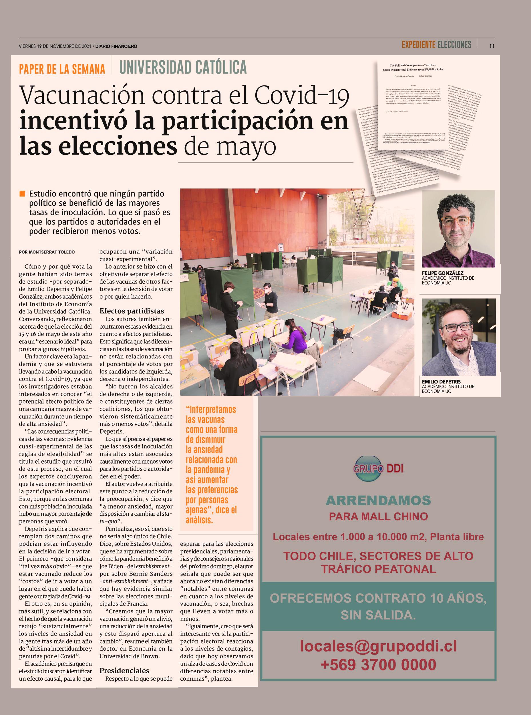 Vacunación contra el Covid-19 la participación en las elecciones de mayo 19-11-2021 Diario Financiero |