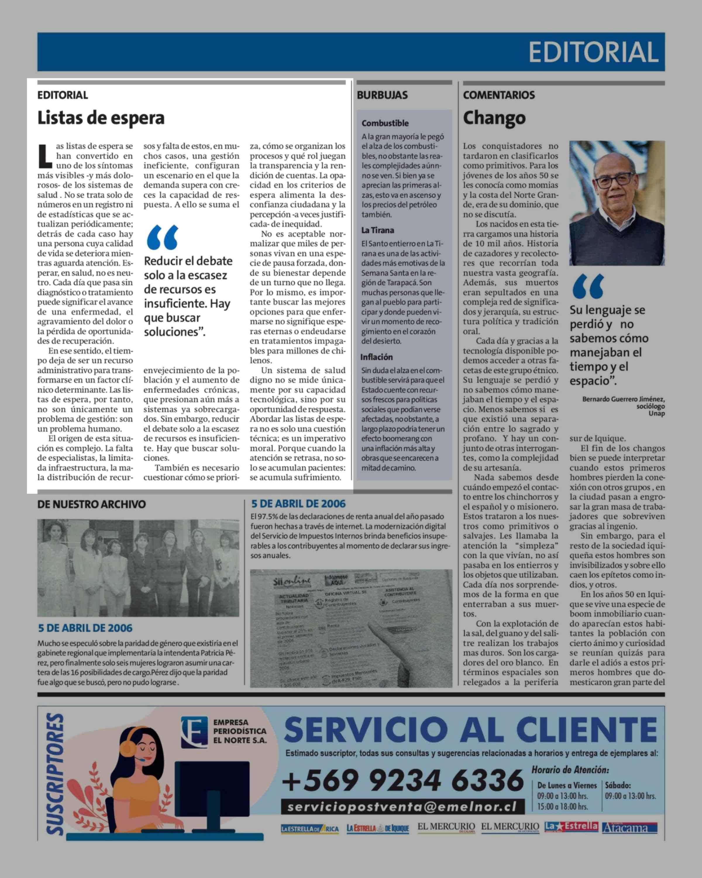 Editorial: Listas de espera 05-04-2026 La Estrella de Iquique |