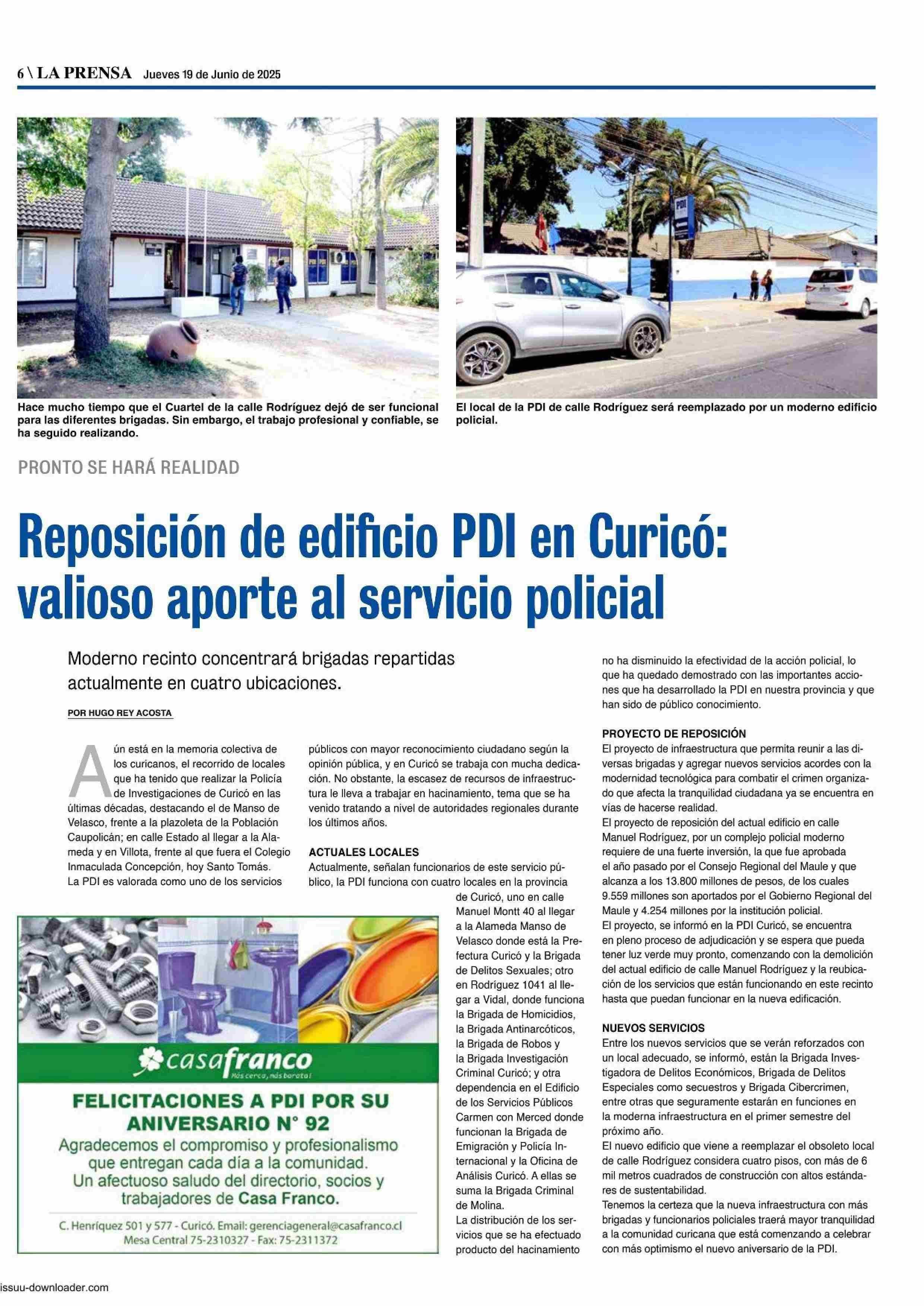 Reposición de edificio PDI en Curicó: valioso aporte al servicio policial 19-06-2025 La Prensa de Curicó |