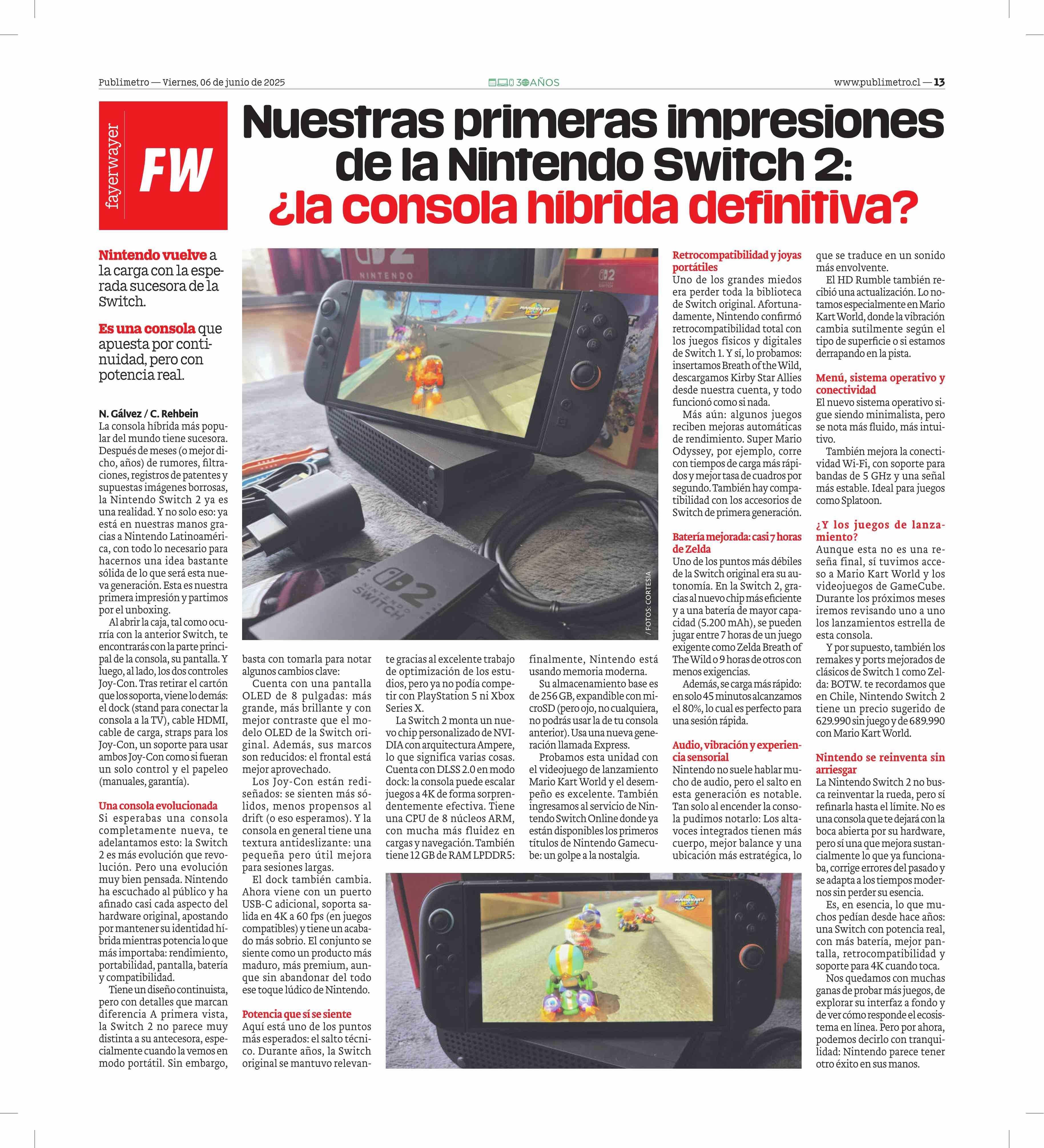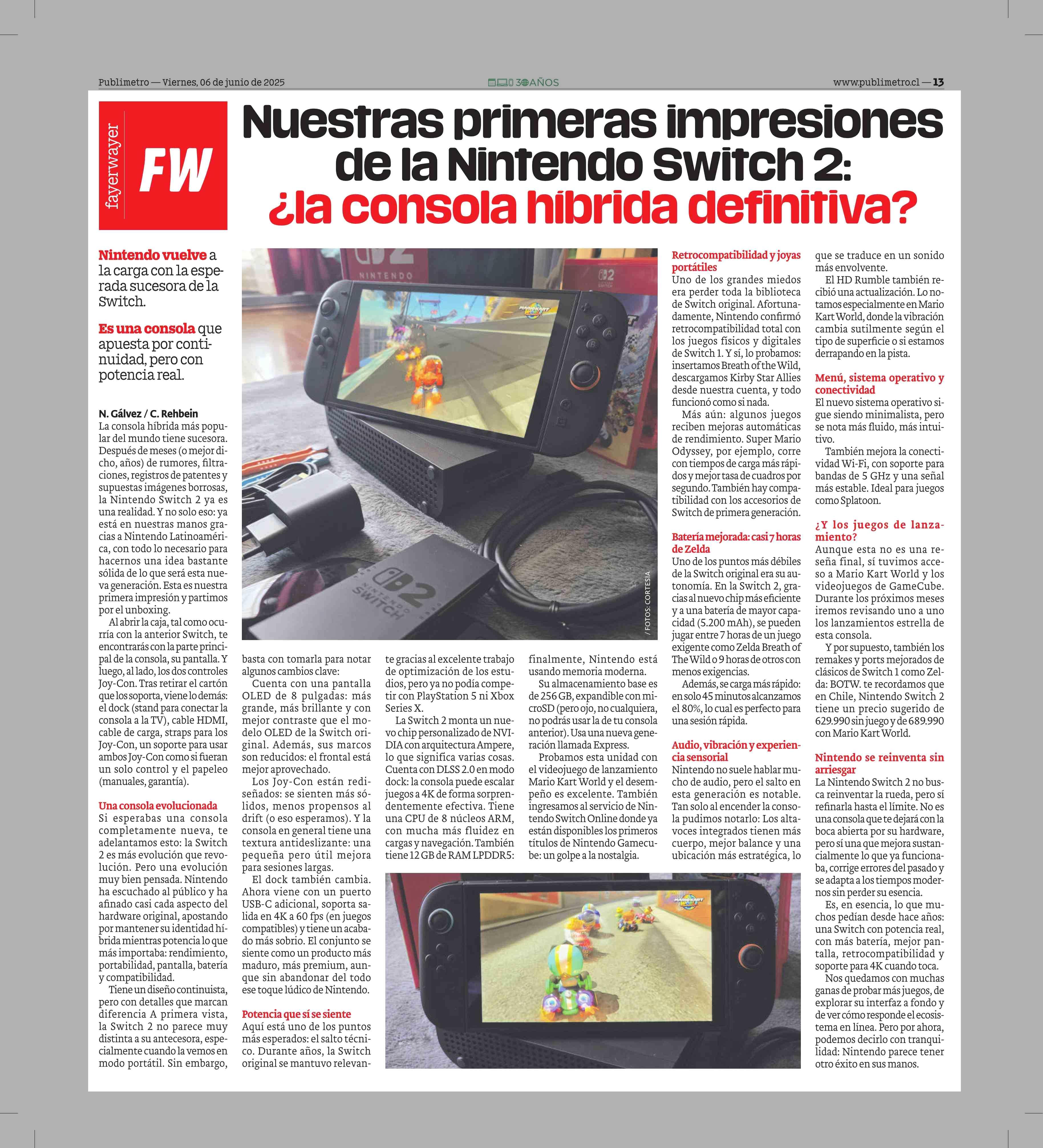 Nuestras primeras impresiones de la Nintendo Switch 2: ¿la consola híbrida definitiva? 06-06-2025 Publimetro |