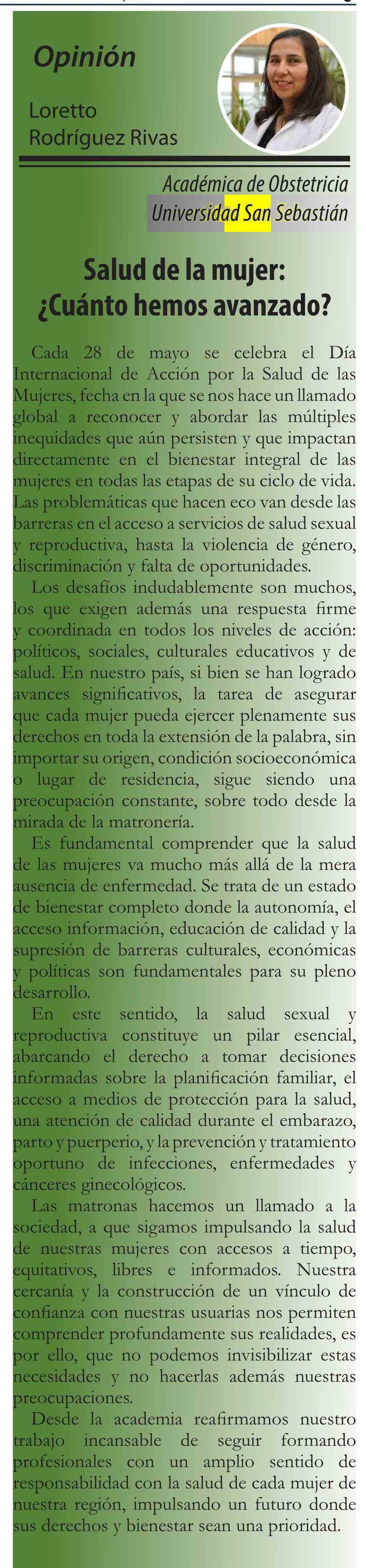 Columnas de Opinión: Salud de la mujer: ¿Cuánto hemos avanzado? 20-05-2025 El Divisadero |