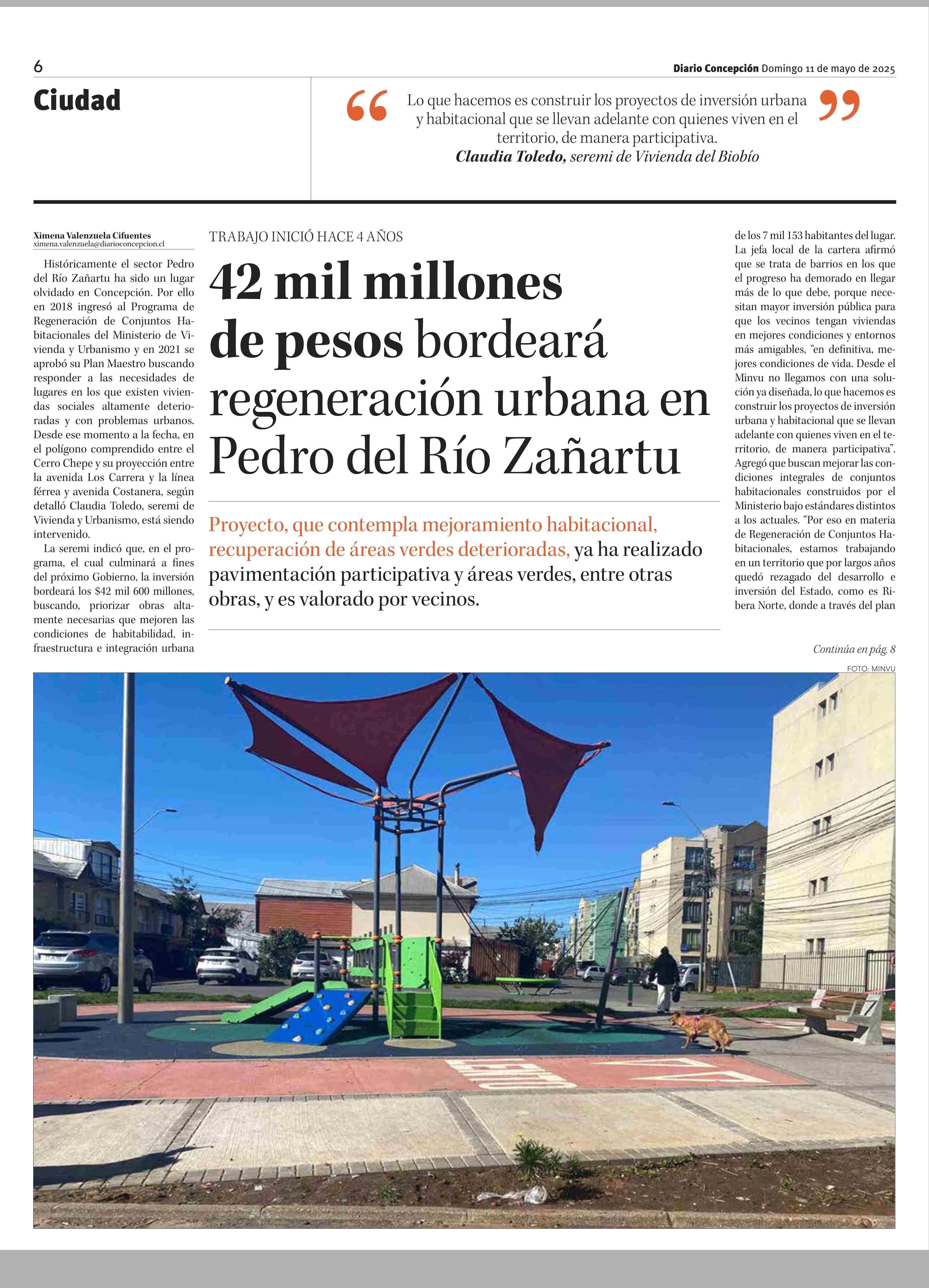 42 mil millones de pesos bordeará regeneración urbana en Pedro del Río Zañartu 11-05-2025 Diario Concepción |