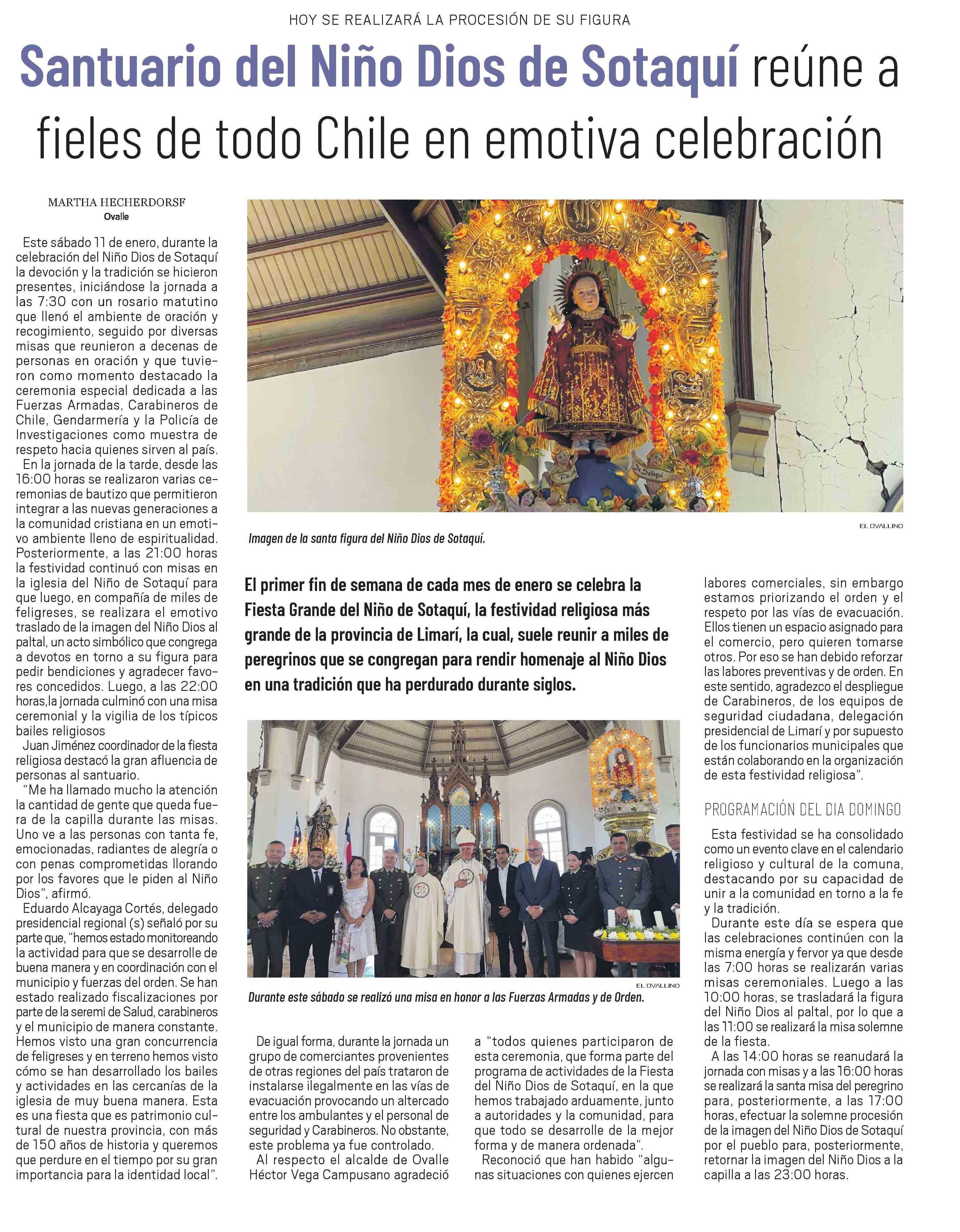 Santuario del Niño Dios de Sotaquí reúne a fieles de todo Chile en emotiva celebración 12-01-2025 El Ovallino |