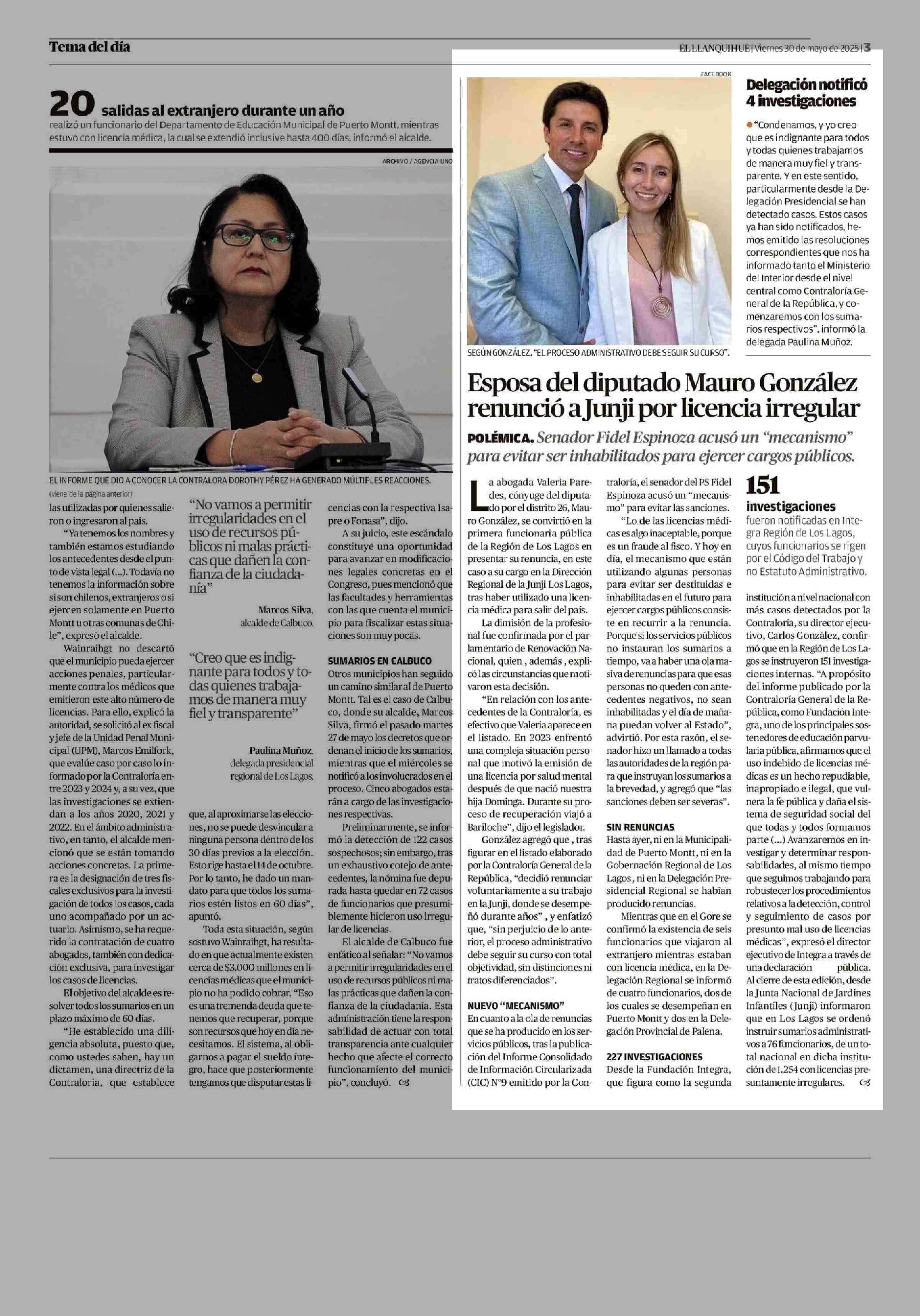 Esposa del diputado Mauro González renunció a Junji por licencia irregular 30-05-2025 El Llanquihue |