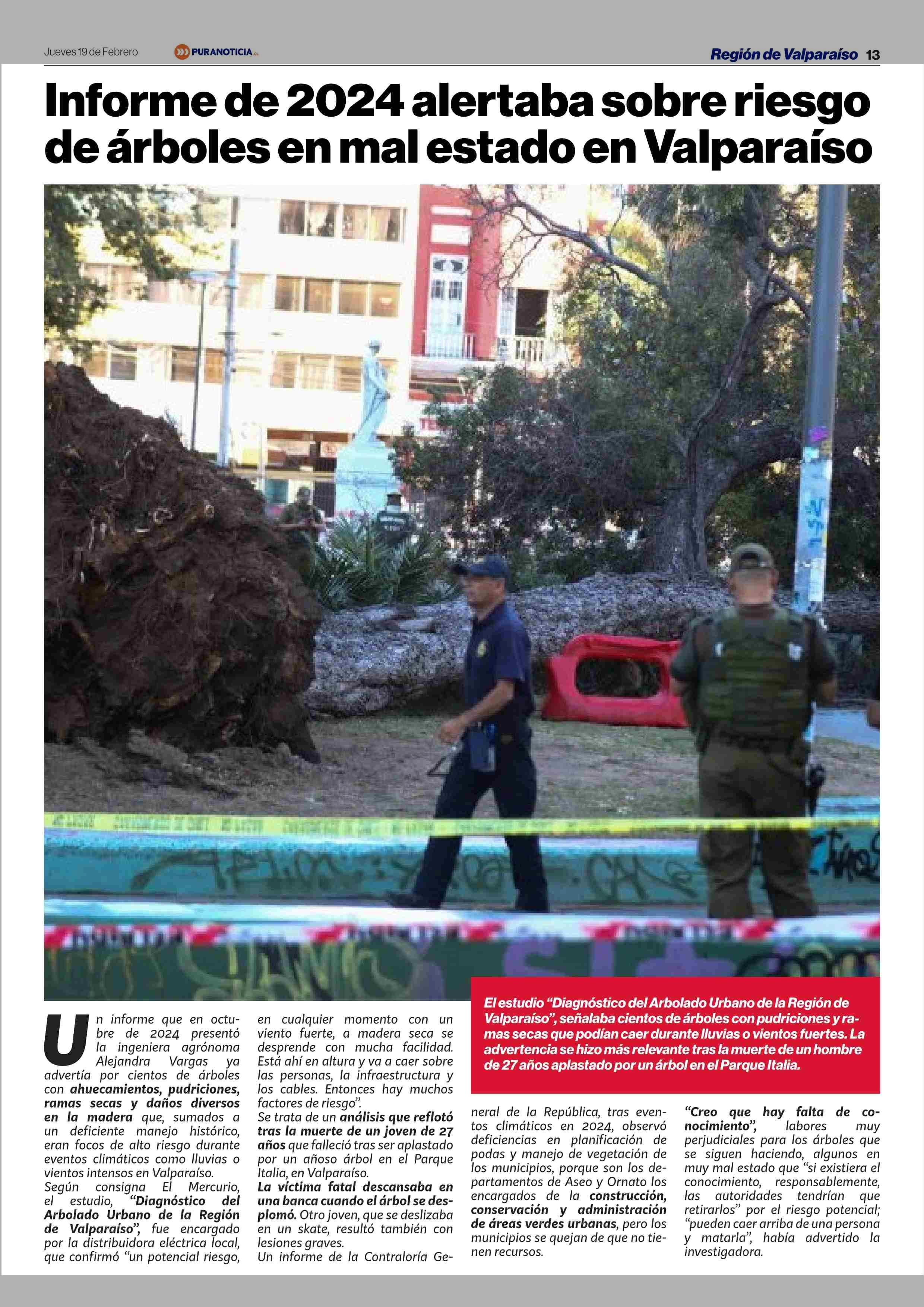 Informe de 2024 alertaba sobre riesgo de árboles en mal estado en Valparaíso 19-02-2026 Puranoticia.cl |