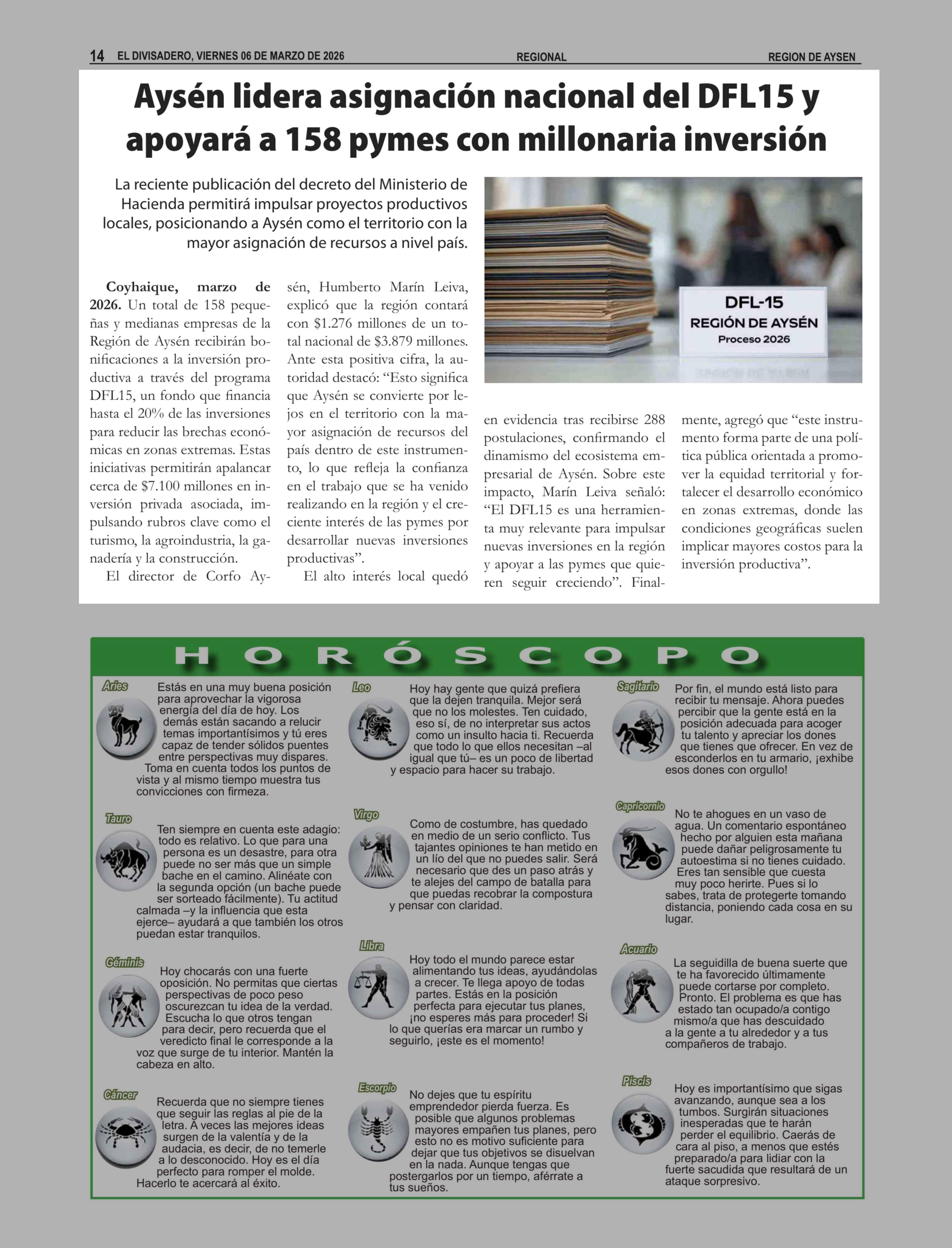Fecha: 06-03-2026 Sector: Noticia general Región: Región Aysén del General Carlos Ibáñez del Campo