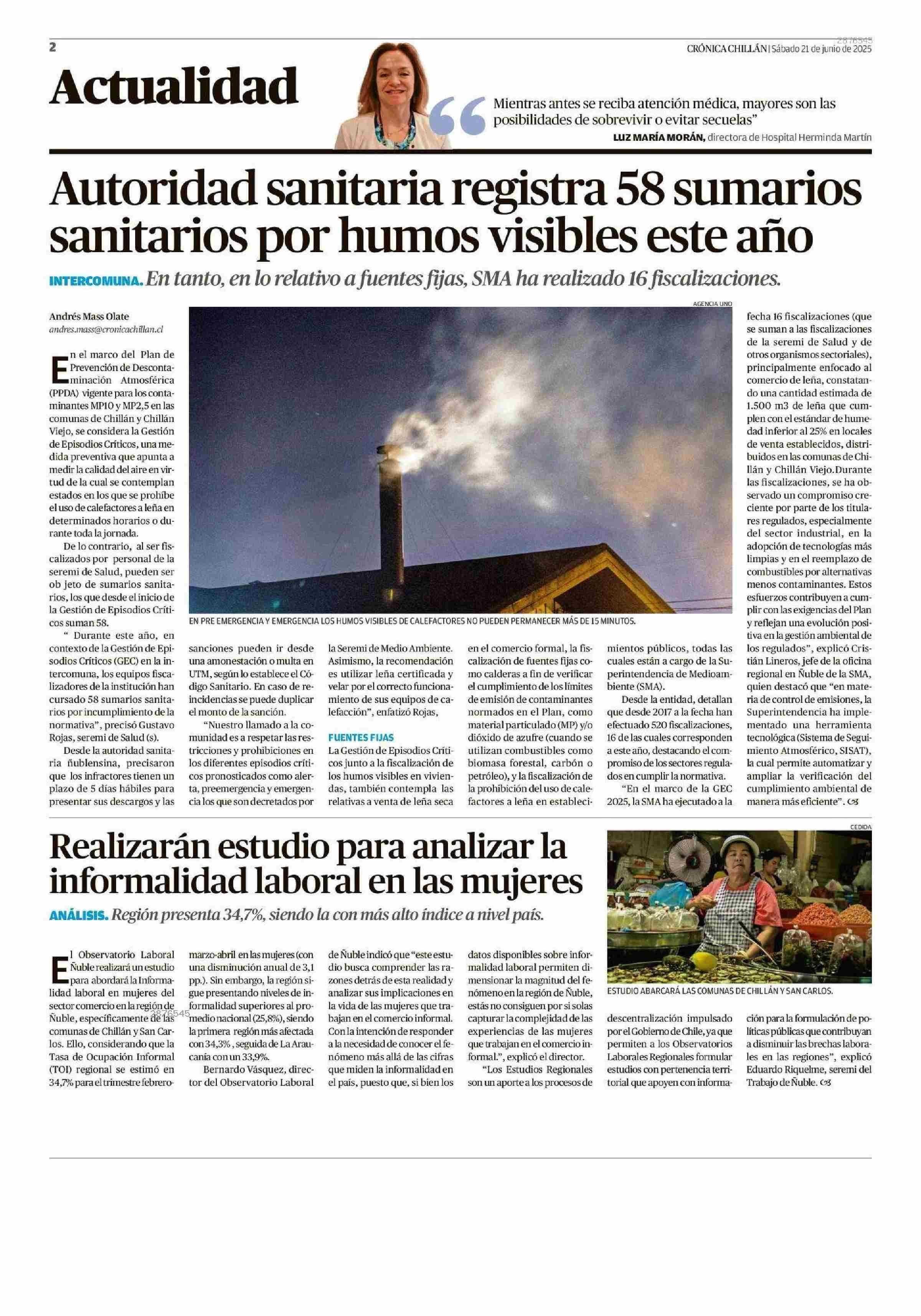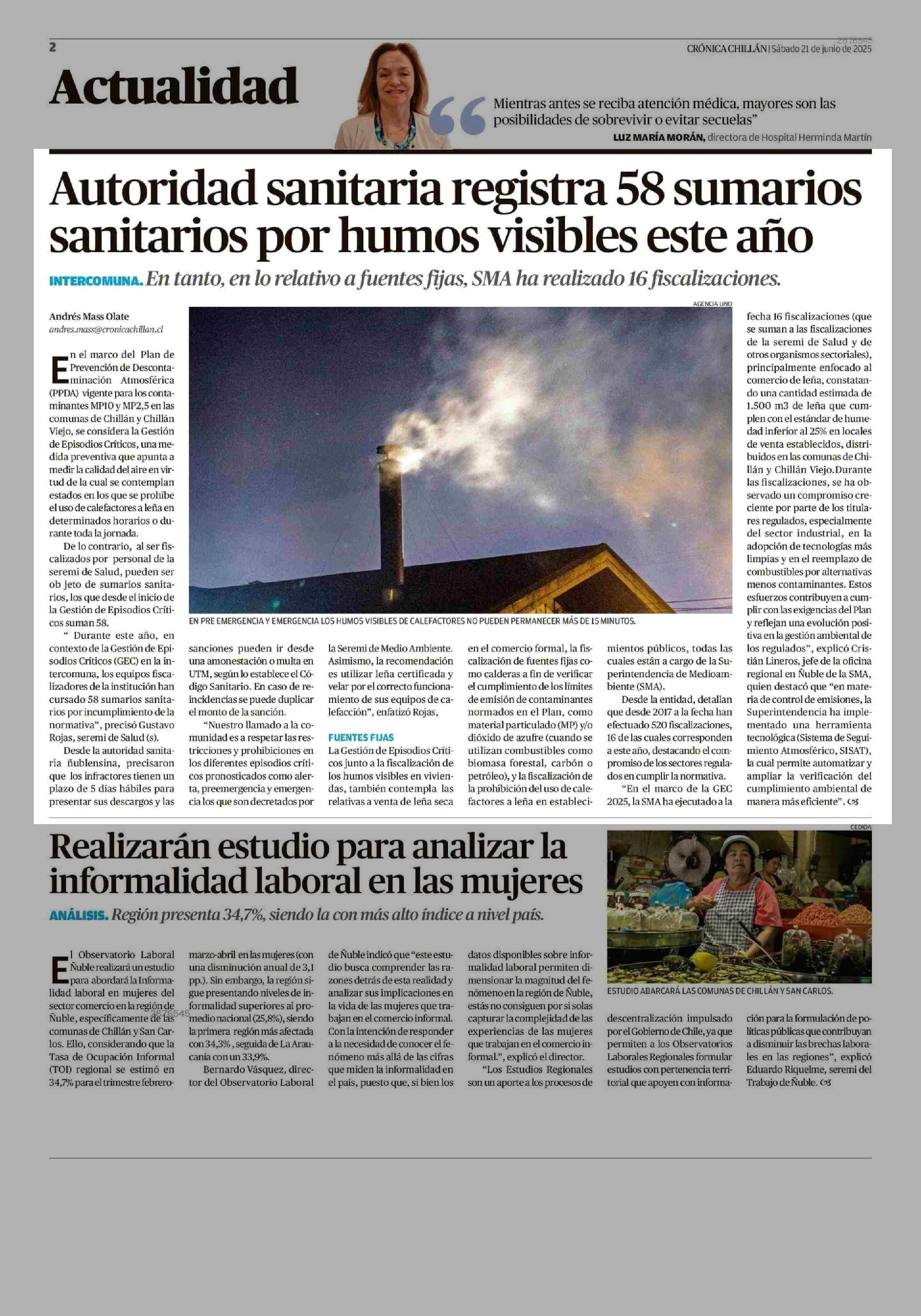 Autoridad sanitaria registra 58 sumarios sanitarios por humos visibles este año 21-06-2025 Crónica de Chillán |