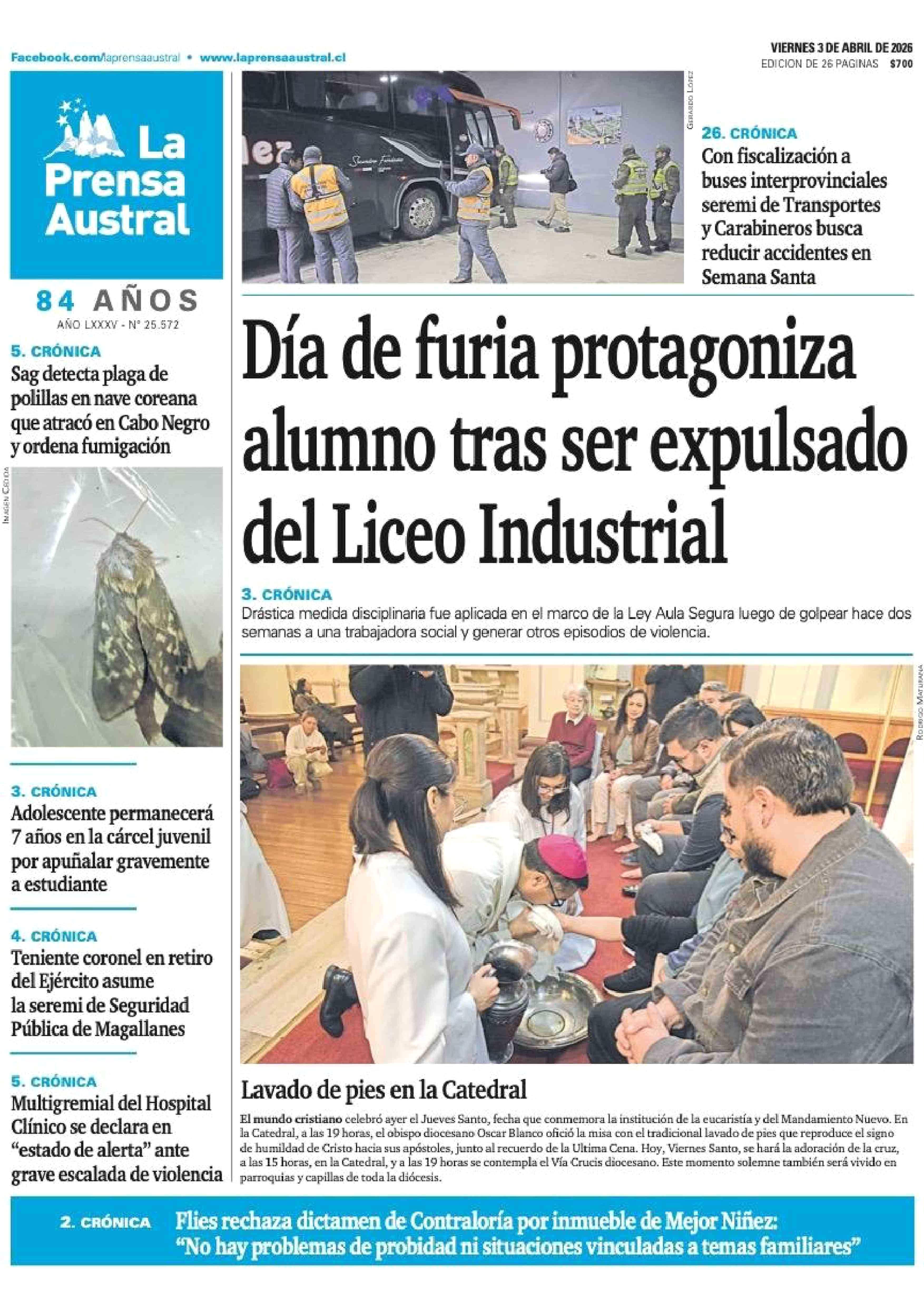 Fecha: 03-04-2026 Sector: Portada Región: Región de Magallanes y de la Antártica Chilena