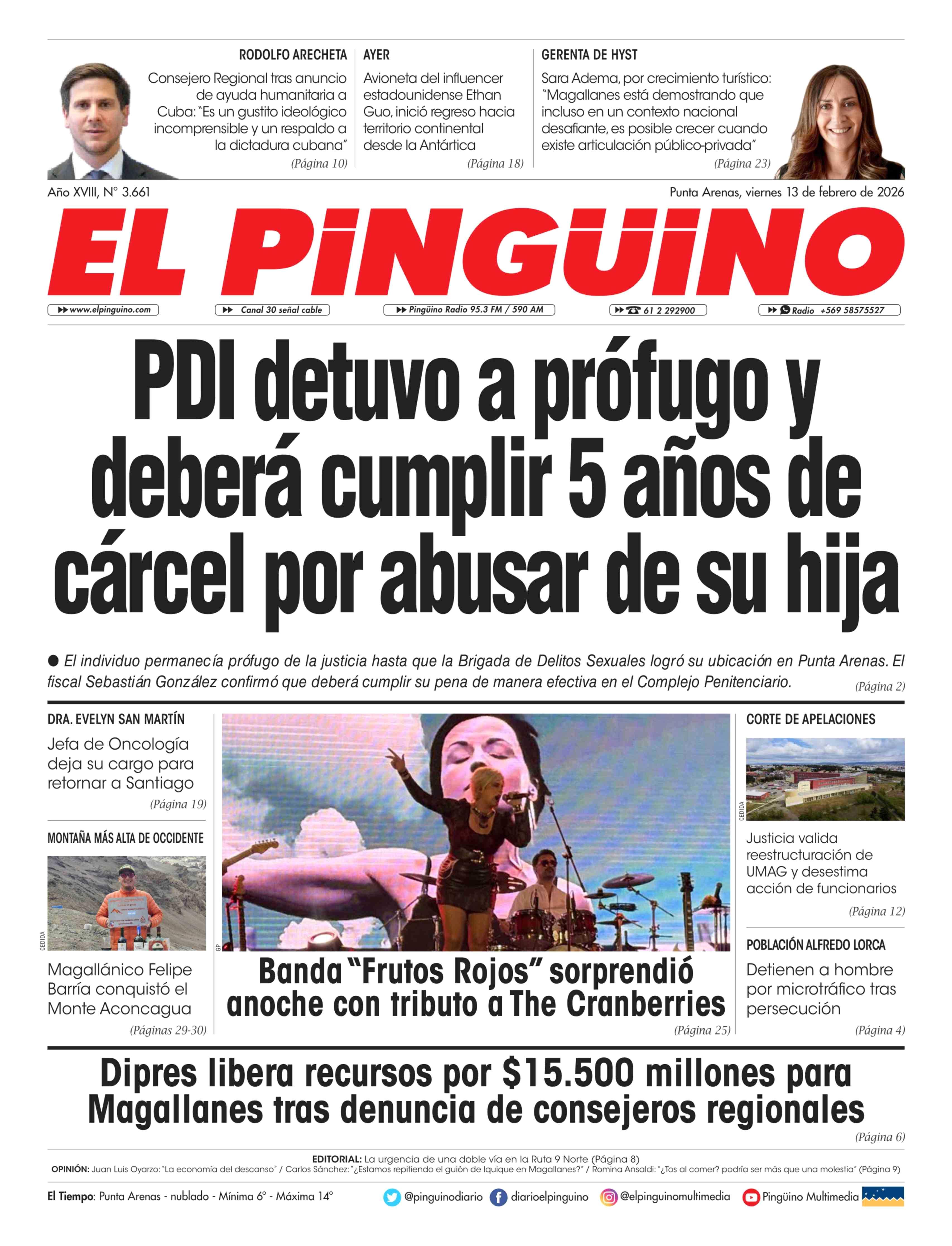 Fecha: 13-02-2026 Sector: Portada Región: Región de Magallanes y de la Antártica Chilena