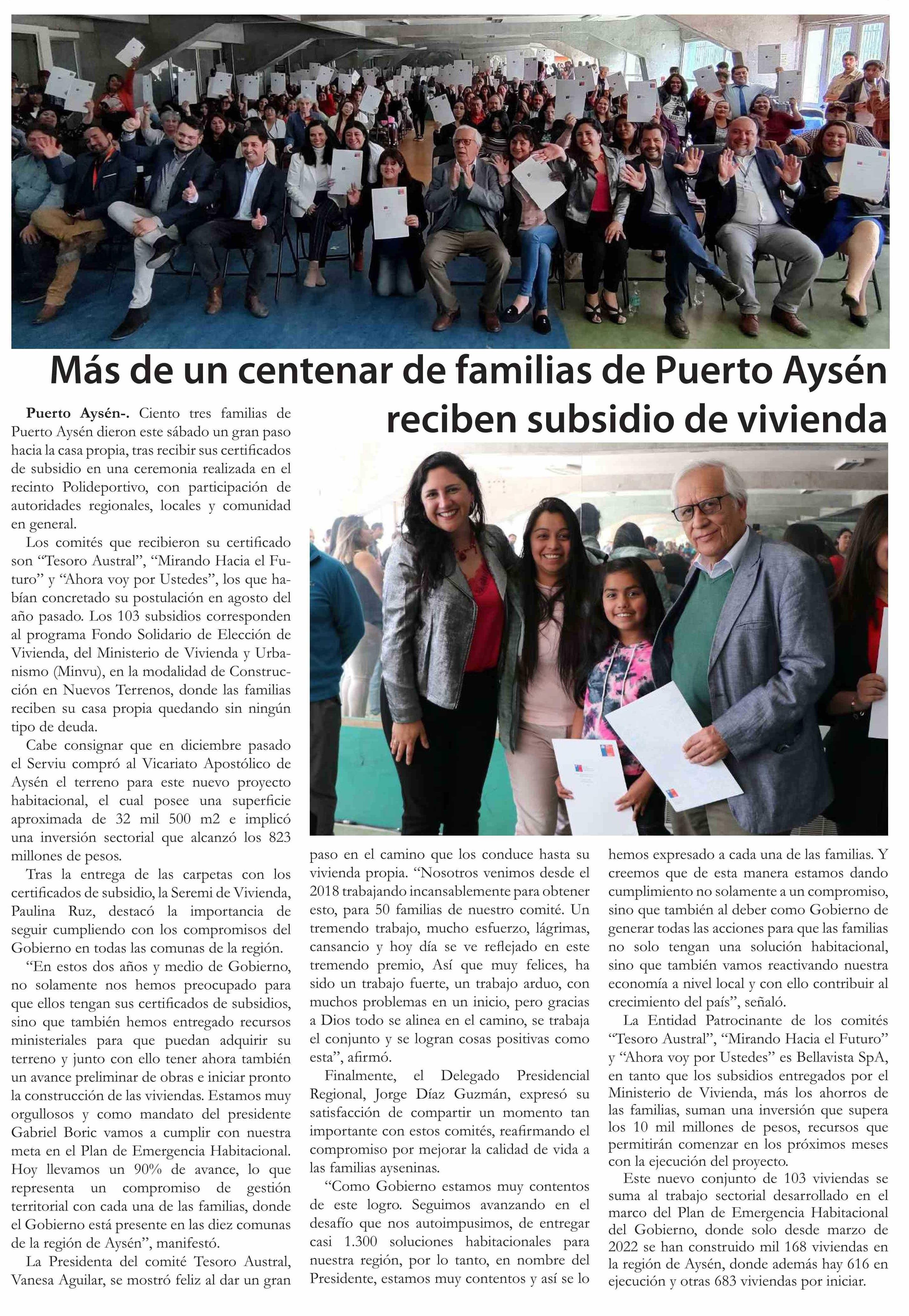 | Título: | Más de un centenar de familias de Puerto Aysén reciben subsidio de vivienda |