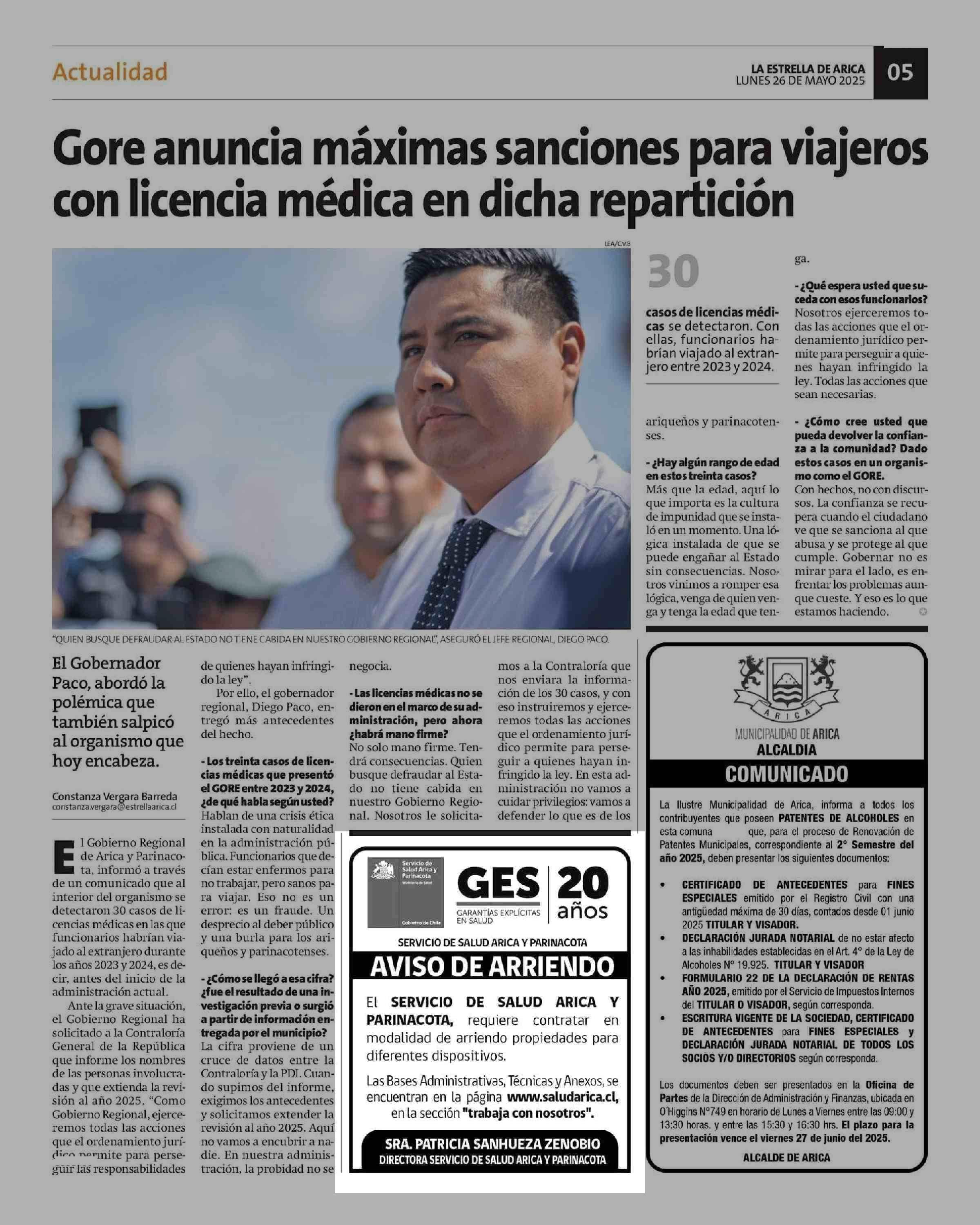 SERVICIO DE SALUDO ARICA Y PARINACOTA 26-05-2025 La Estrella de Arica |