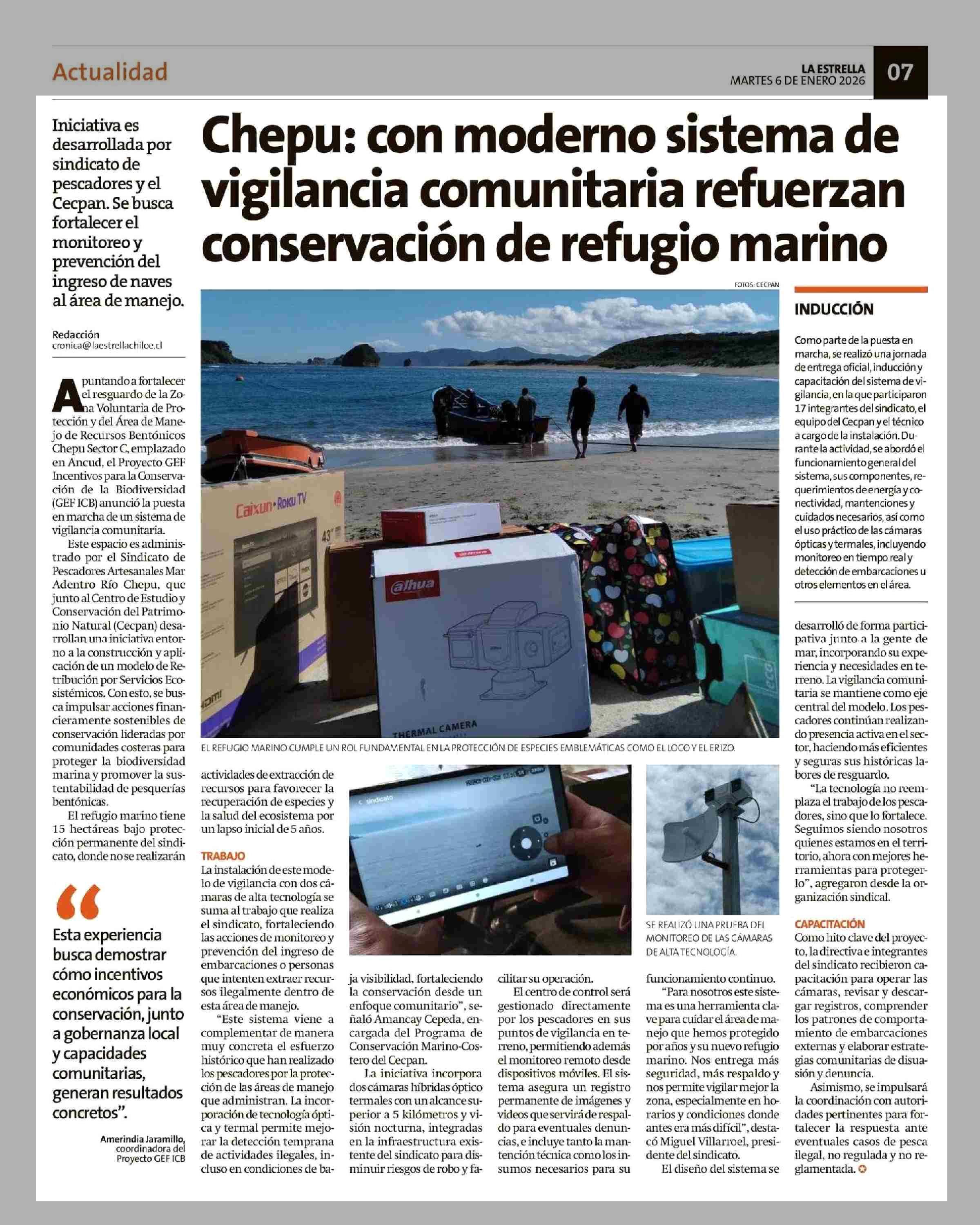Chepu: con moderno sistema de vigilancia comunitaria refuerzan conservación de refugio marino 06-01-2026 La Estrella de Chiloé |