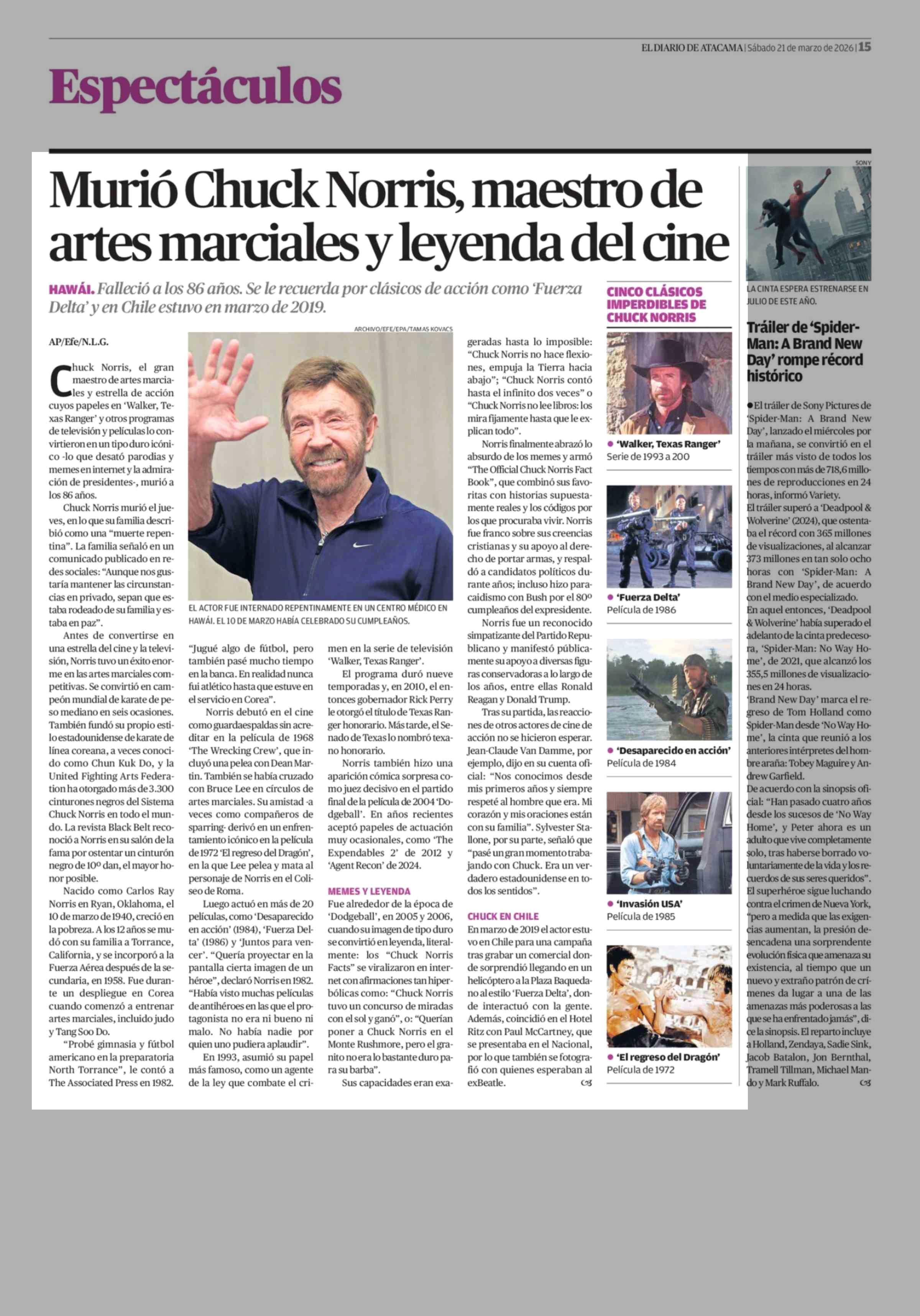 Título: Murió Chuck Norris, maestro de artes marciales y leyenda del cine